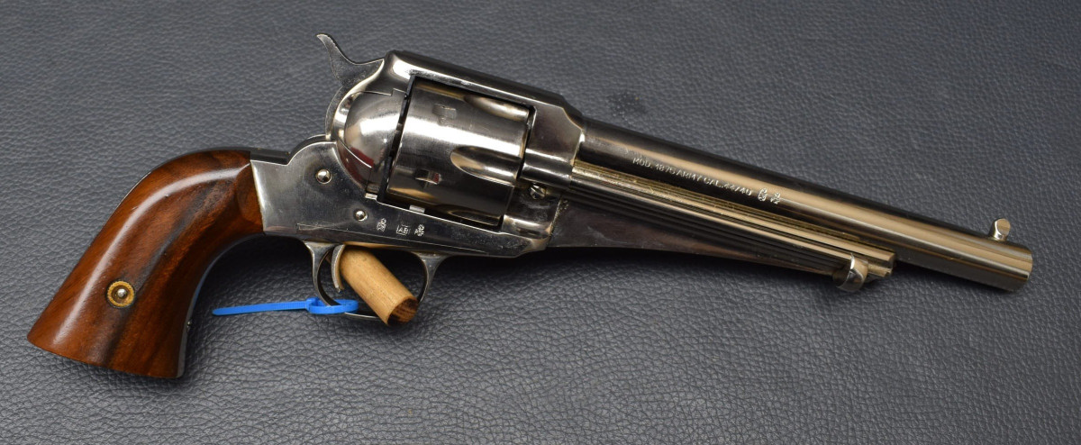 Uberti 1875 Army Outlaw, Kaliber 44-40 WCF Sondermodell aus einer Sammlung! schwerer SAA Revolver mit 7,5" Lauflänge, Visierrinne, vernickelt,