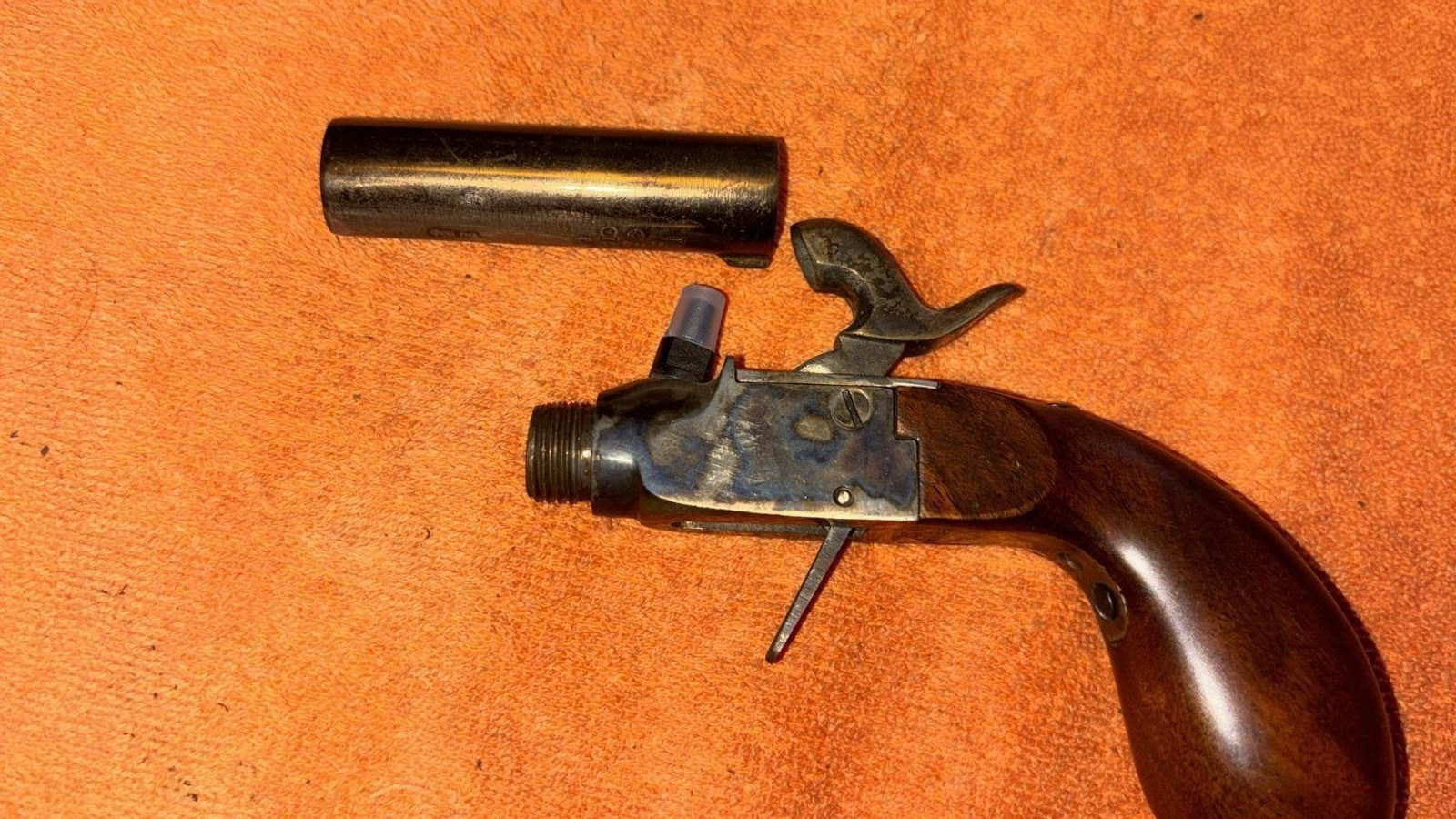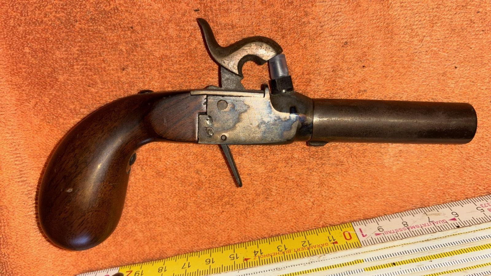Diese schöne Vorderlader Pistole - PEDERSOLI, Kaliber 44 - ist für mich im neuwertigen Zustand. Ein kleines Döschen Zündhütchen lege ich dabei.
