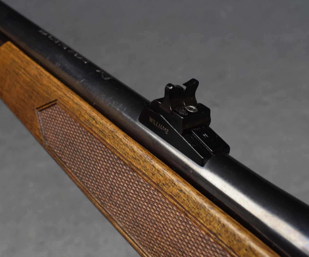 Gesamtlänge 112 cm, Lauflänge 60 cm, Schaftlänge 36 cm Korn wechselbar, Williams Visierung, Zylinderverschluß, Ladeanzeige,
