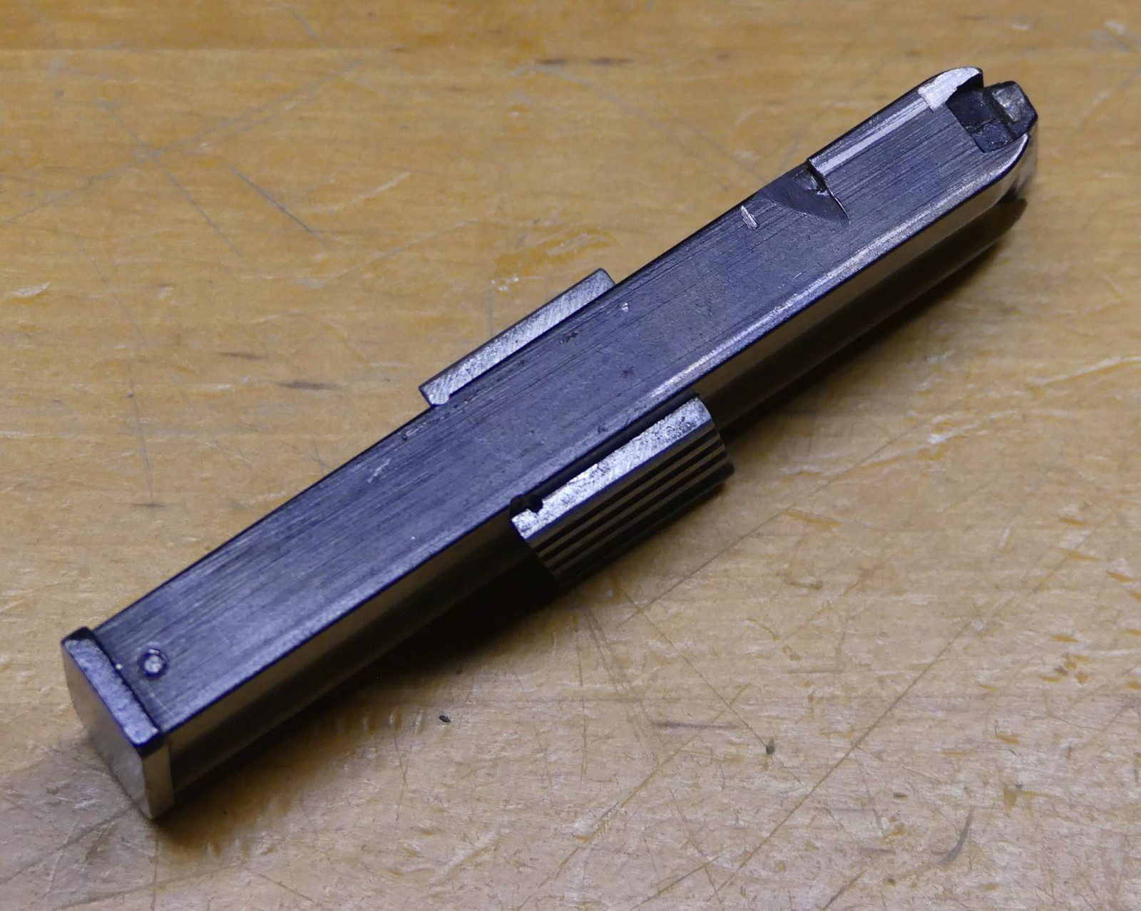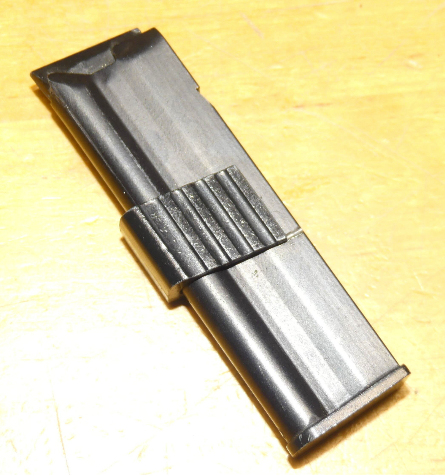 Im Kundenauftrag: Magazin für die Erma EGM 1 / Mod 70. Kaliber .22 lr Leider ist das Magazin etwas "verbastelt" So wurde eine neue Halterast angebracht, (siehe Foto) der Anschlag wurde gekürzt und ist locker auf dem Magazin - dieser Anschlag muss also neu geklebt werden. Das Magazin selbst funktioniert, die Magazinfeder drückt die Patrone zuverlässig hoch. Aufgrund der Bastelei am Magazin verkaufen wir das Magazin als defekt - es muss gegebenenfalls an Ihre Waffe angepasst werden. Informationen zu Ihren Verbraucherrechten etc finden Sie unter Mygun.