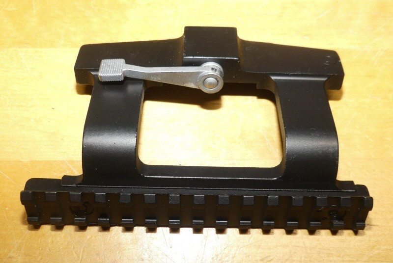 Lagerrestposten: originale russische Seitenmontage für Dragunov, SVD, TIGR oder ähnliche, welche es erlaubt Picatinnymontageringe zu verwenden. Die Montage wird auf die seitliche Schiene aufgesetzt, der Hebel umgelegt und somit ist die Montage fest auf der Schiene verriegelt. Der Vorteil ist, dass hier die Weaver / Picatinny Montageringe verwendet werden können. Informationen zu Ihren Verbraucherrechten etc finden Sie unter Mygun.