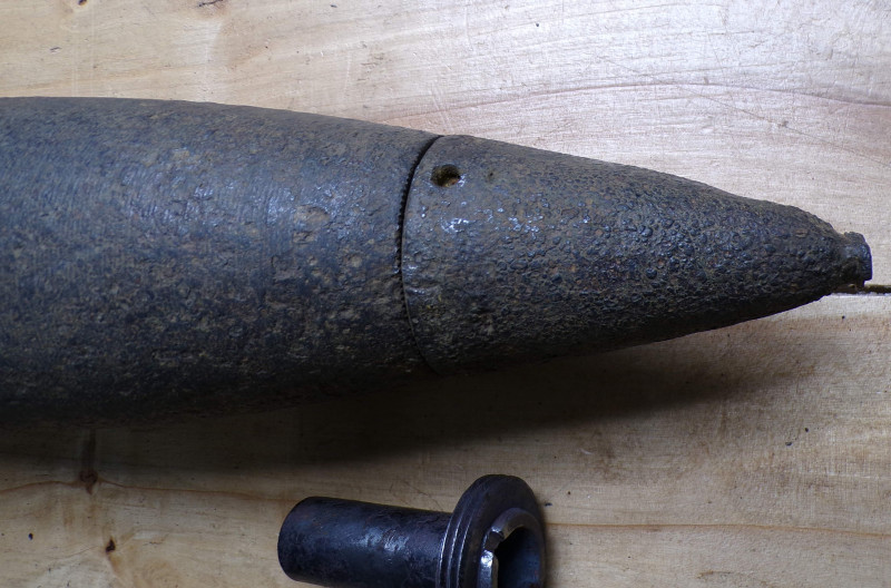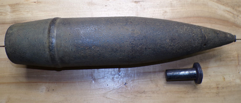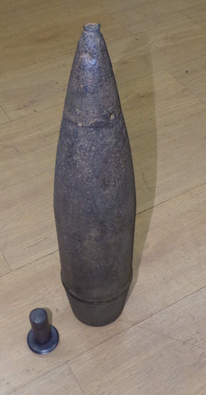 10,5 Geschoß für Leichte-Feld-Haubitze 18 im einen gutem zustand. Teilweise noch im Farbe. Baujahr 1945, Hersteller code - unleserlich. Ganz frei von gefahrstoffen.