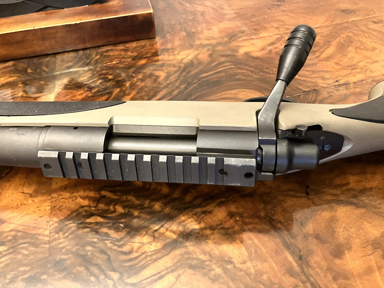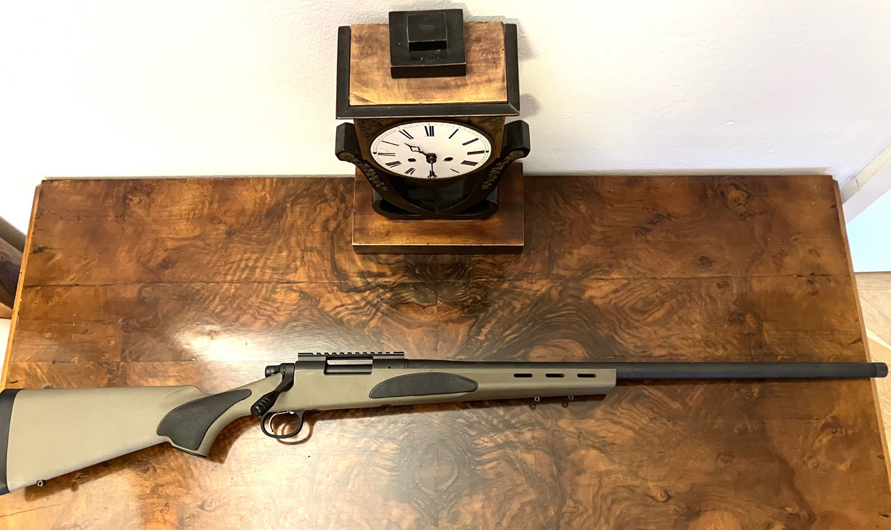Versteigert wird die abgebildete Repetierbüchse mit der gezeigten Picatinny-Montageschiene. Die Waffe verschießt die .243 Win, wohl die beste 6-mm-Patrone. Die Patrone bringt deutlich mehr Energie ins Ziel als .22-Zoll-/5,6-mm-Patronen (.223 Rem, .22-250 Rem), verfügt jedoch über dasselbe angenehme Rückstoßverhalten und die gleiche gestreckte Flugbahn : - )