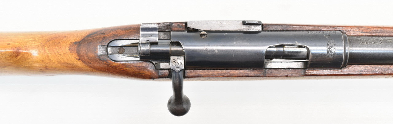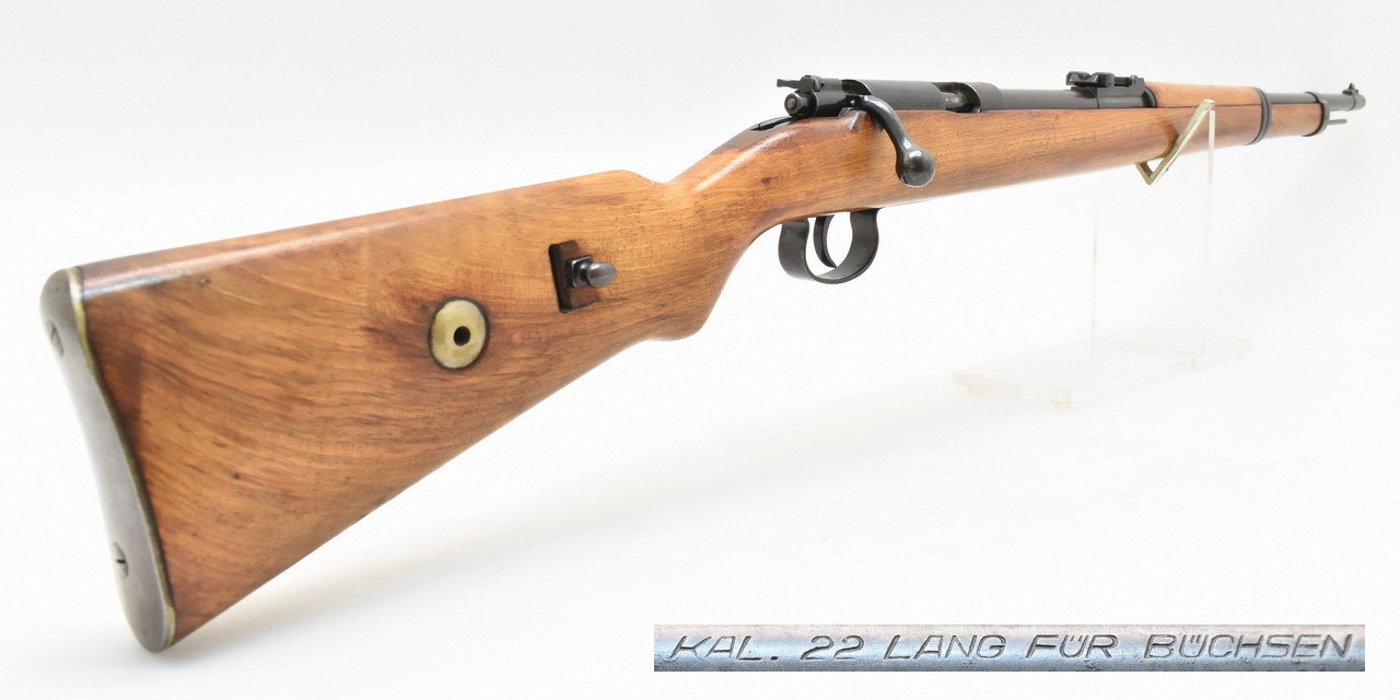 Kommissionsverkauf Einzelladerbüchse Gesamtlänge: 1110mm. Lauflänge: 658mm. Gewicht: 3290g. Nummerngleiches, einschüssiges KK - Trainingsgewehr / Deutsches Sportmodell 1934 Der Verkauf erfolgt im Kundenauftrag, daher schließen wir jedwede Garantie, |
