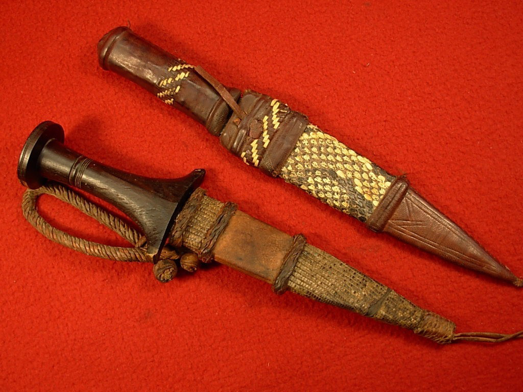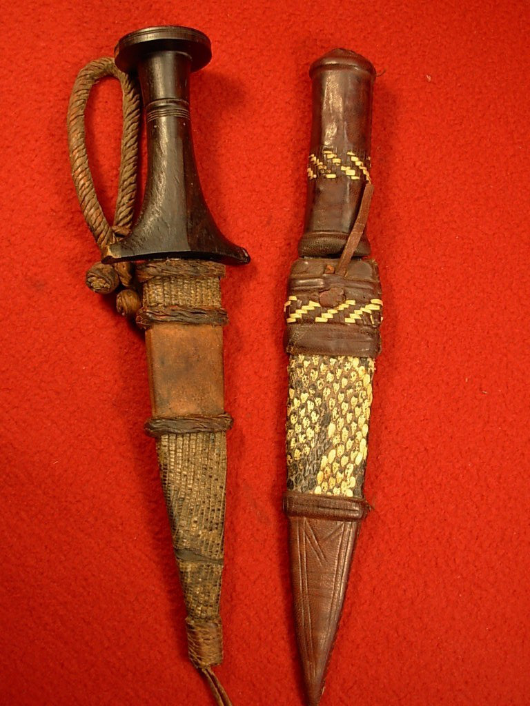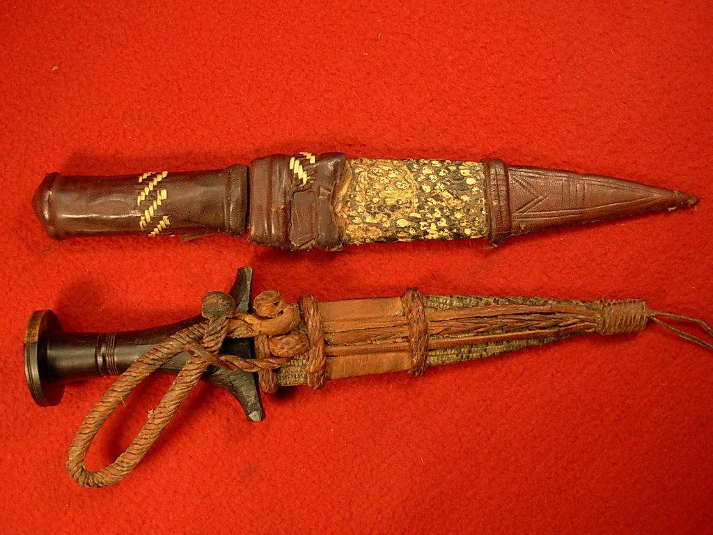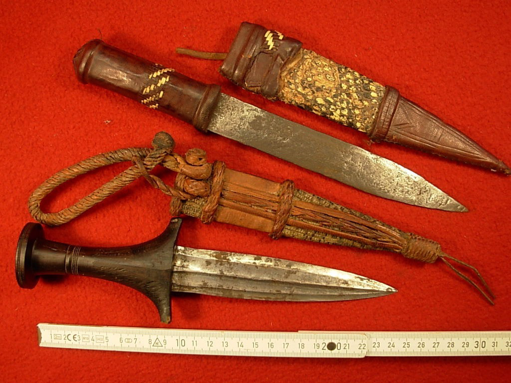 Alte originale Dolche Afrika – jeweils mit Lederscheide – Ritualmesser ––––- Zustand siehe Bilder . Artikel stammt aus Sammlungsauflösung. Bei Fragen bitte Mail-