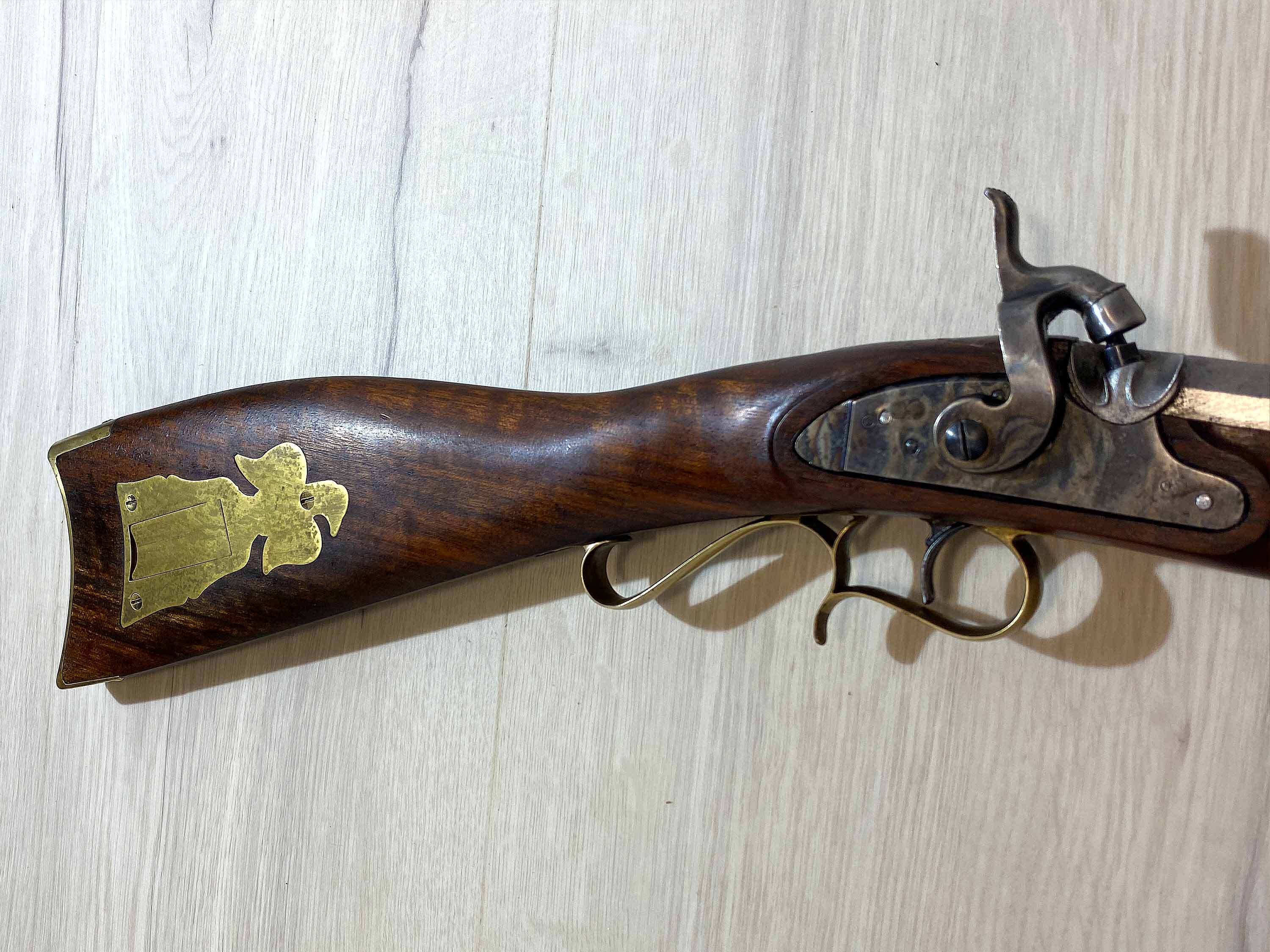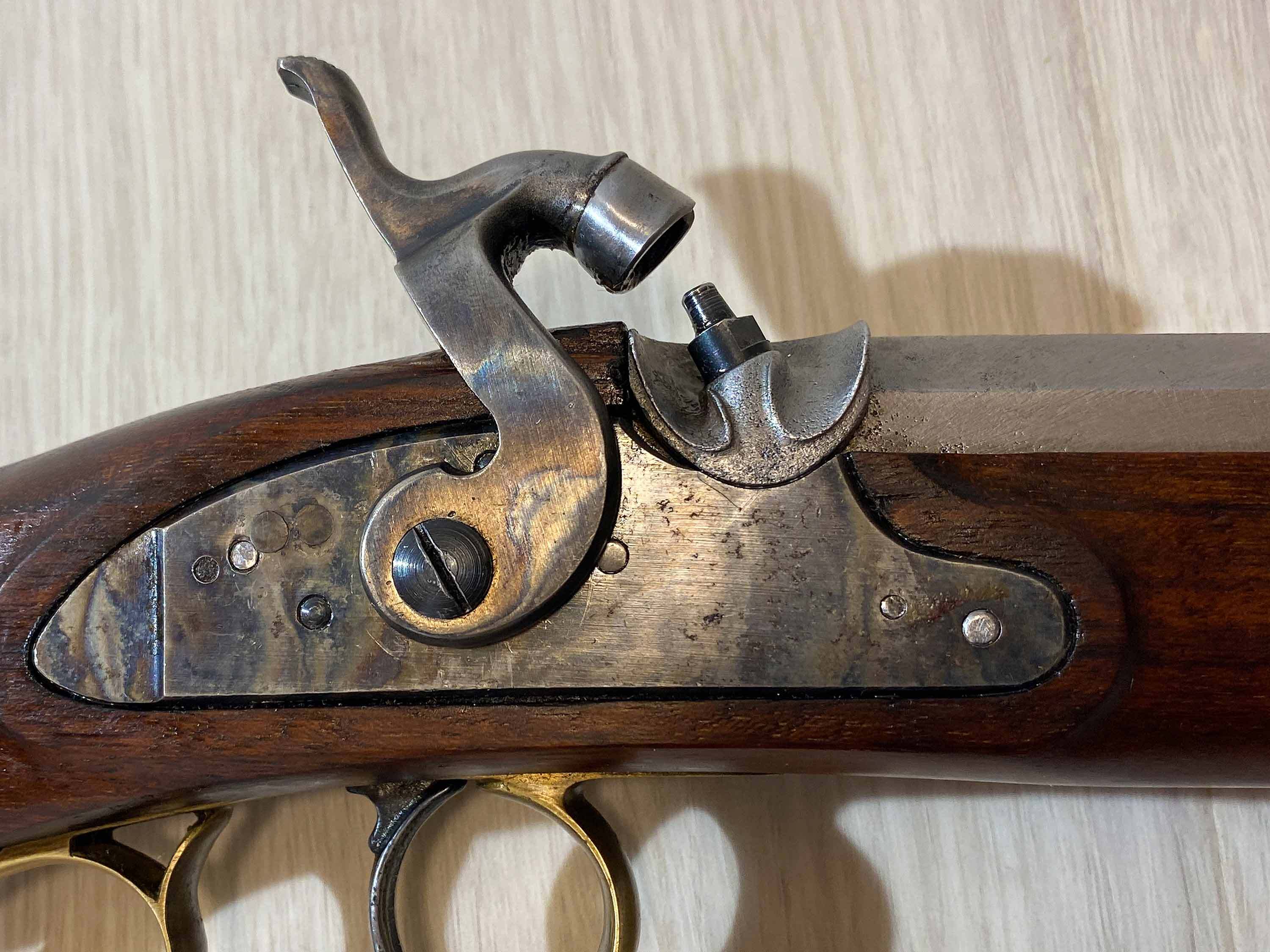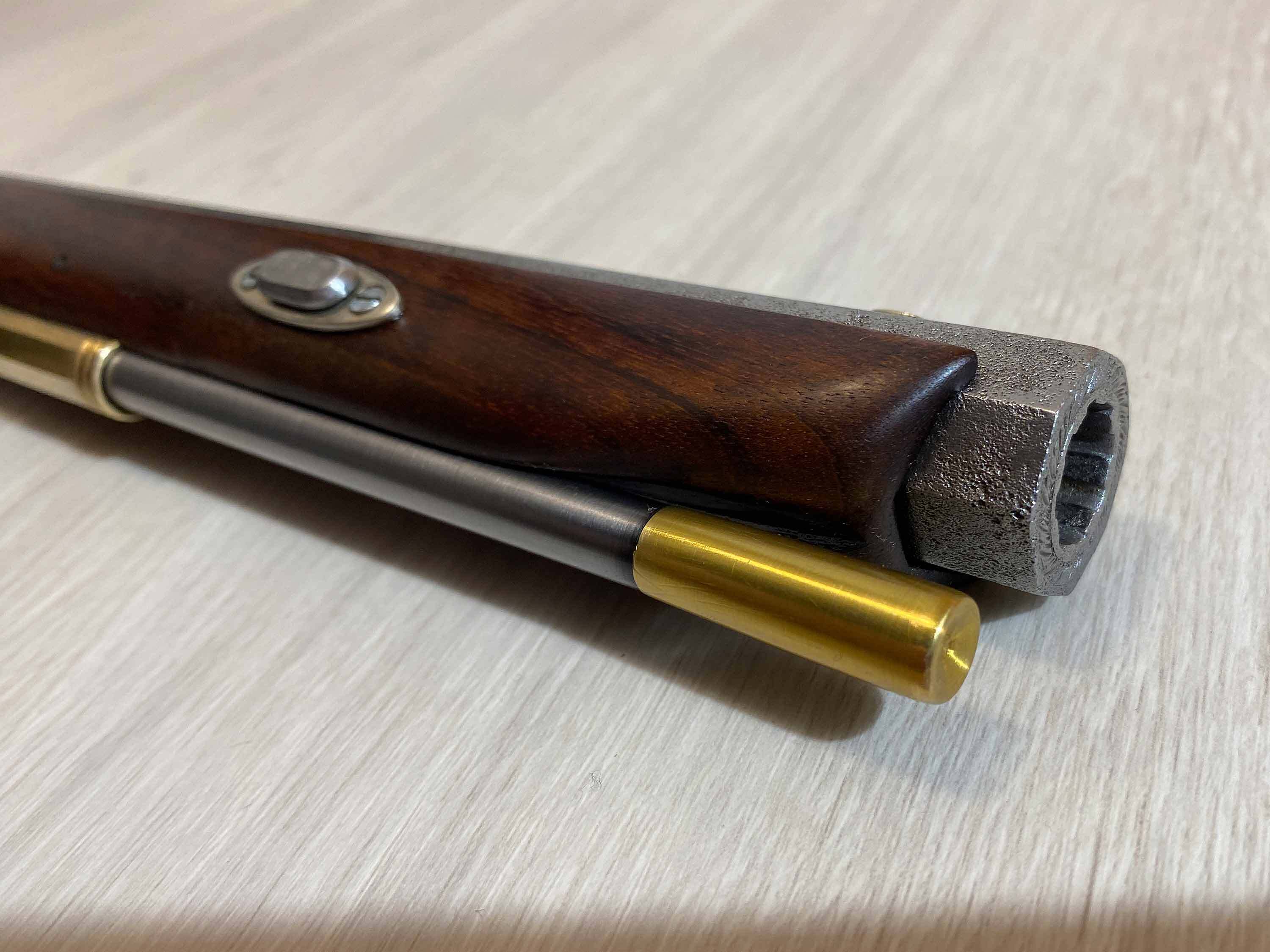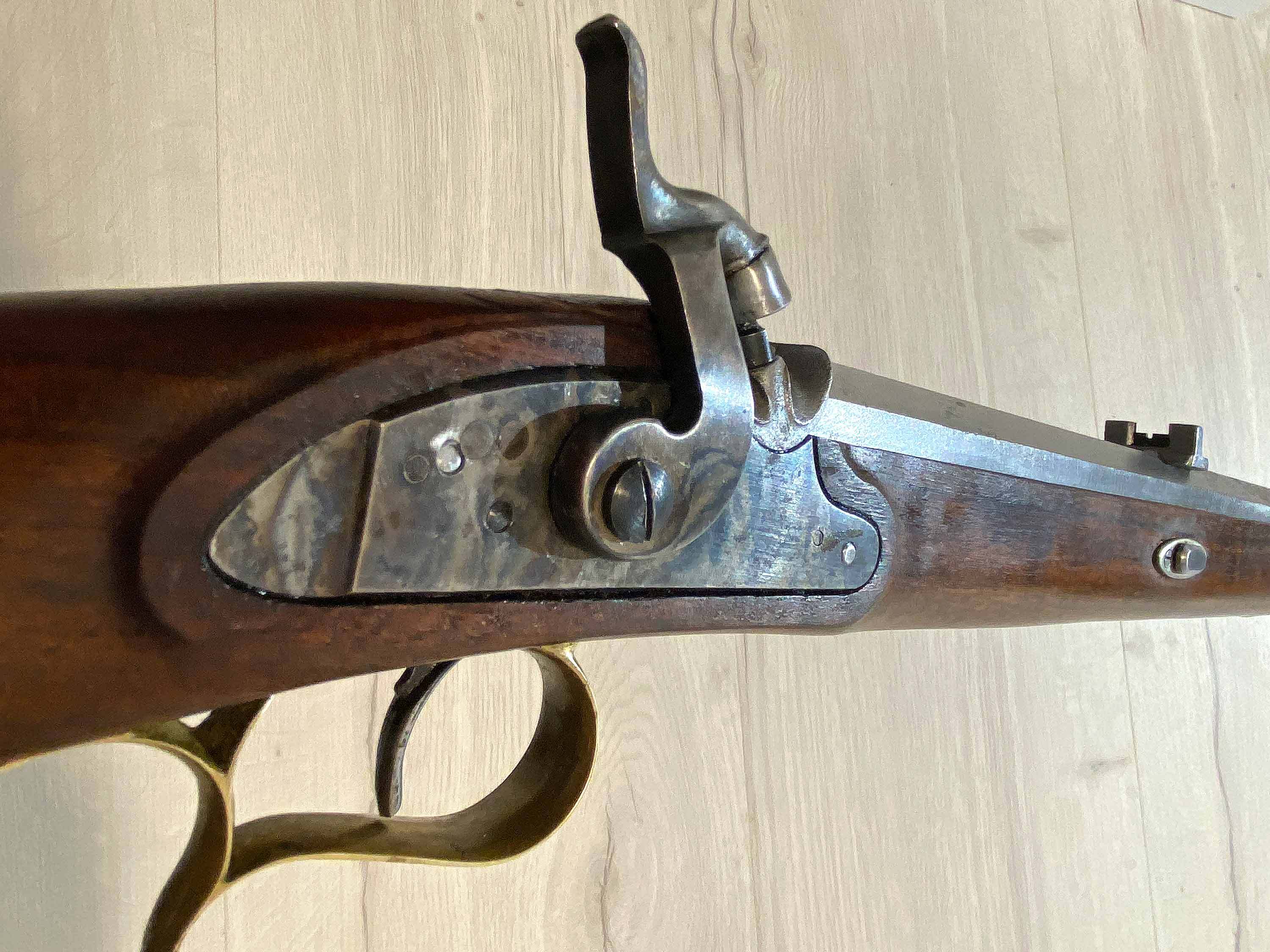 Das buntgehärtete Schloss fühlt sich qualitativ hochwertig an, rastet präzise in zwei Stellungen und schlägt sauber ab. Der Lauf ist über Laufkeile mit dem Schaft verbunden. Der durchgehende metallene Ladestock und der Schaft scheinen nachträglich auf den Lauf adaptiert worden zu sein.