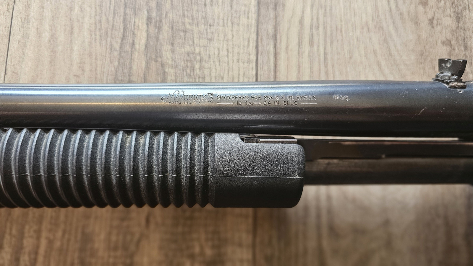 Maverick Vorderschaft Repetierflinte mit Mossberg Austauschlauf im Kal. 12/76 Mag.