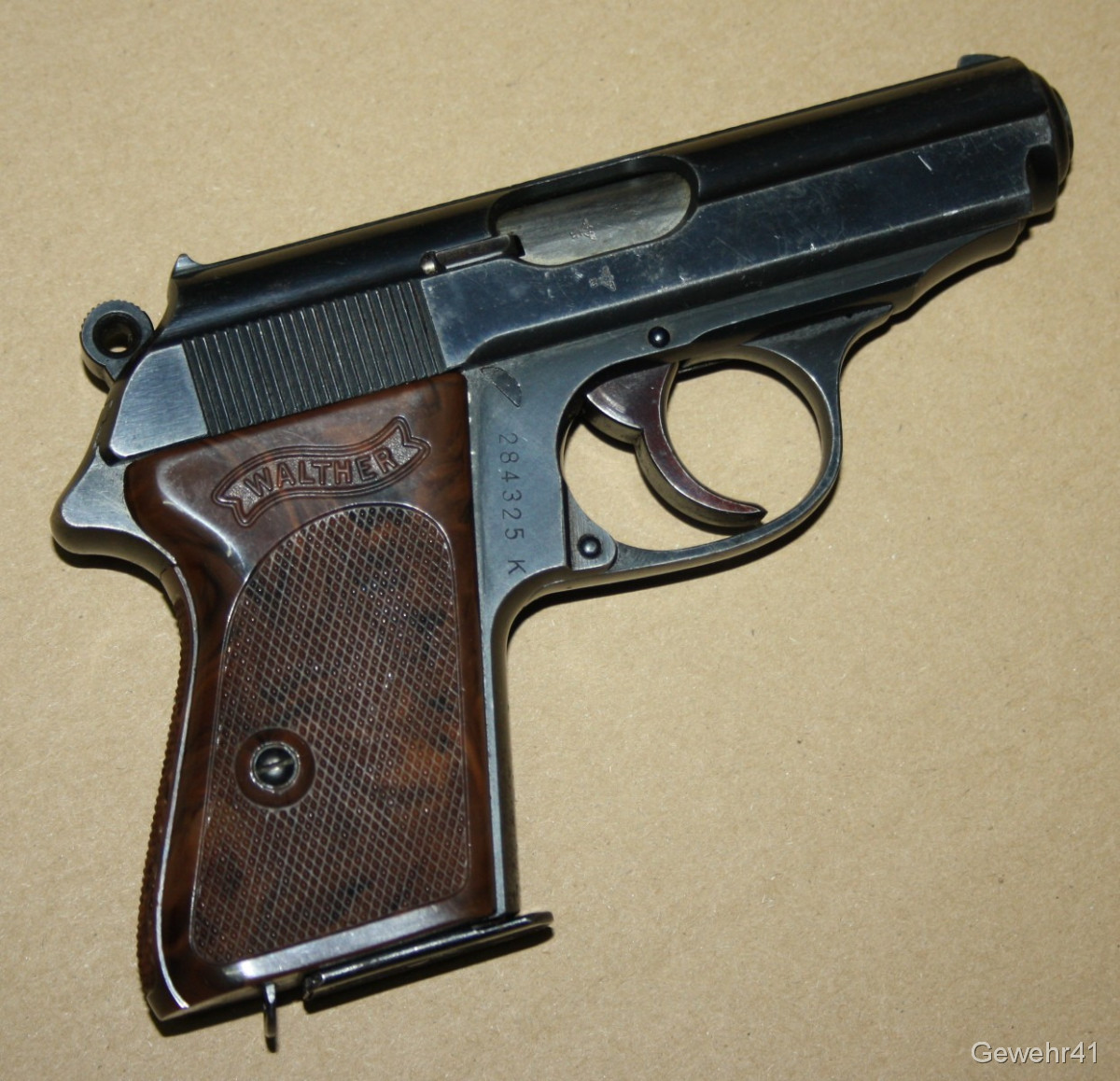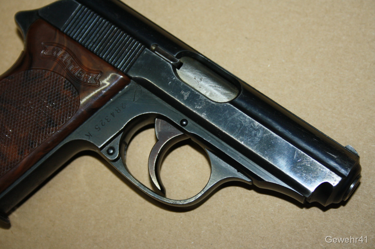 Sie bieten auf diese Walther PPK "Zella Mehlis" im Kal. 7,65mm Br. Die Pistole ist im schönen Zustand mit nur leichten Gebrauchsspuren. Lauf und Funktion einwandfrei. Ohne Neu-Beschuss, daher Verkauf nur an Händler und Sammler.