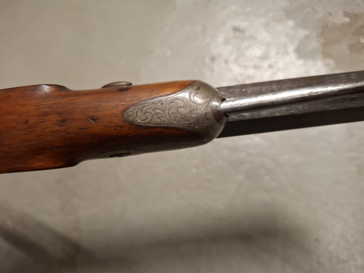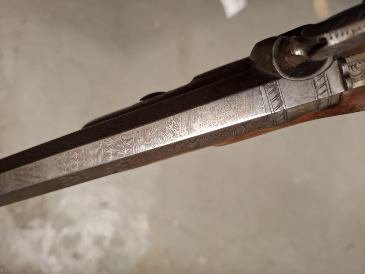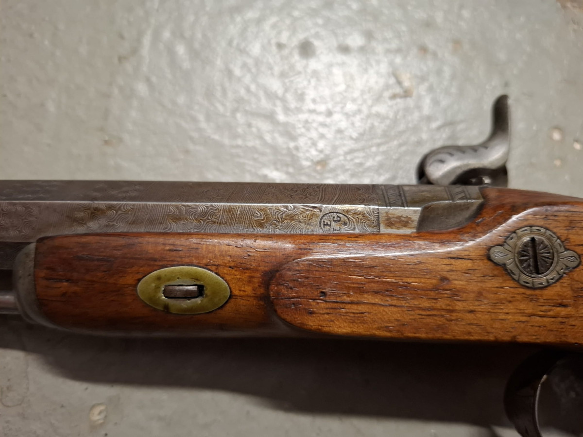 Vorderlader Kaliber .50 mit Damastlauf und vielen Gravuren