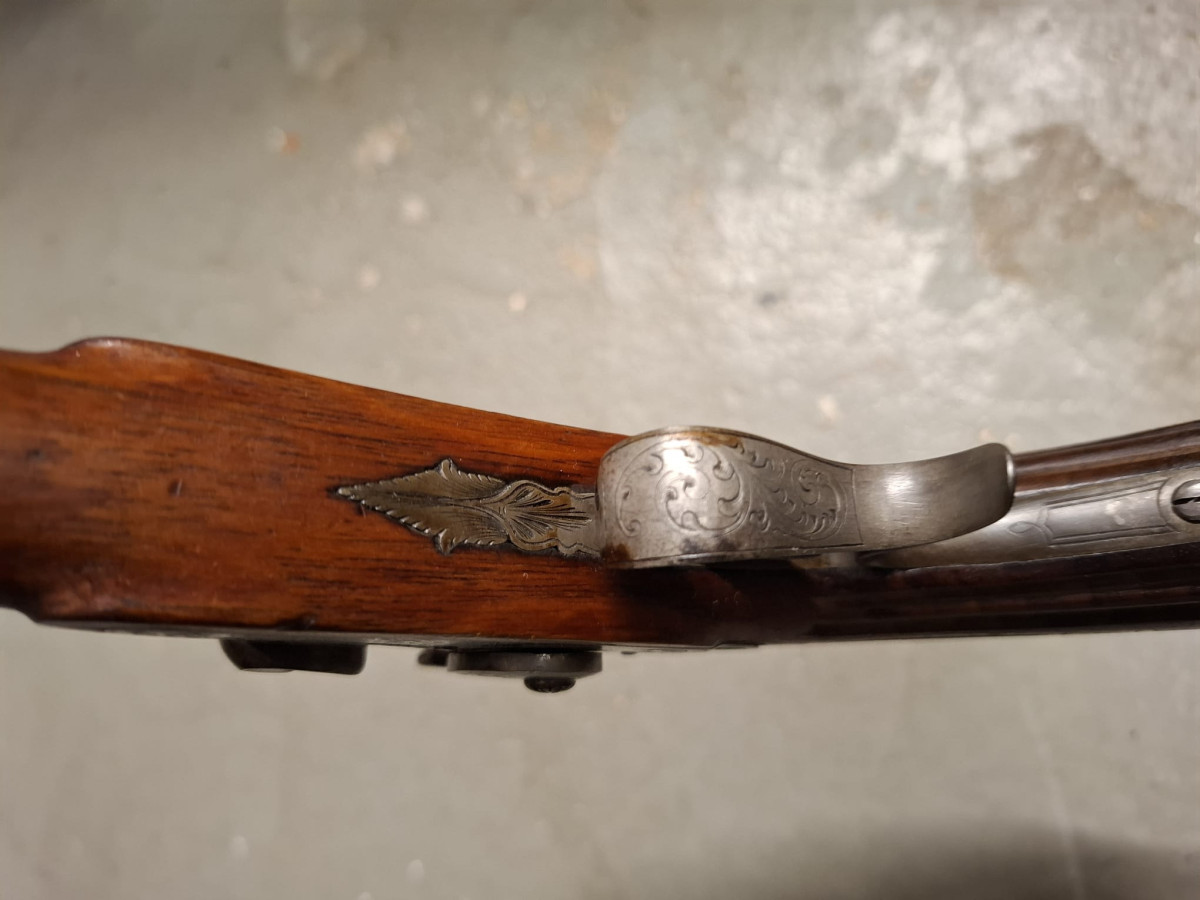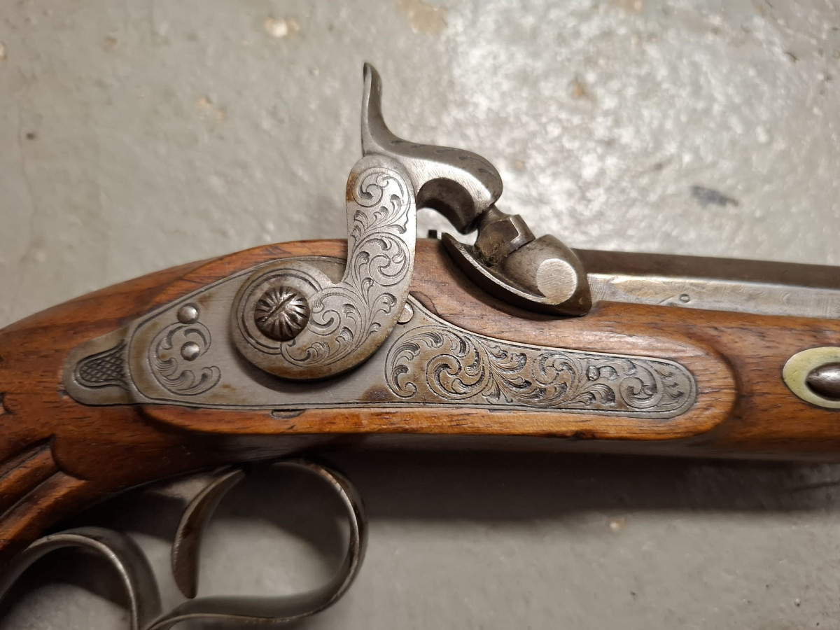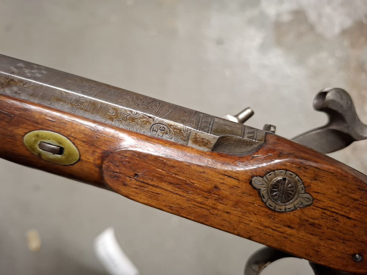 Vorderlader Kaliber .50 mit Damastlauf und vielen Gravuren