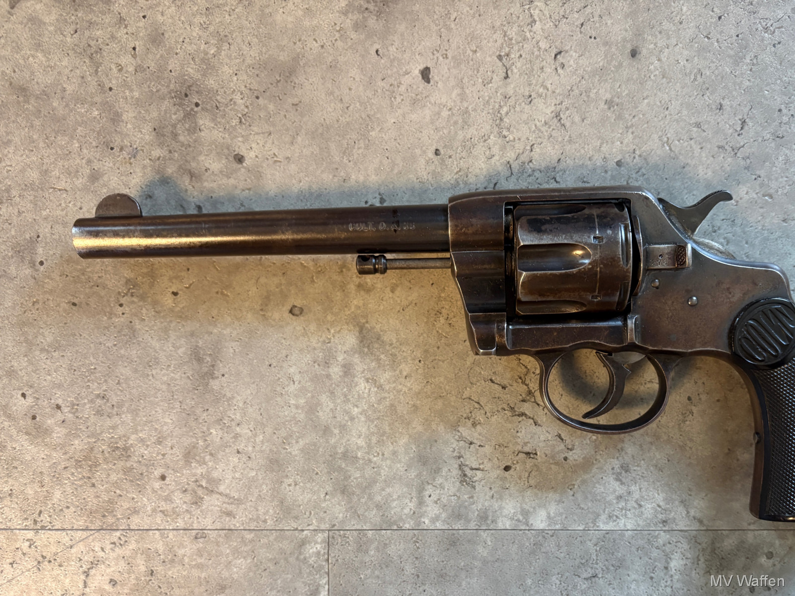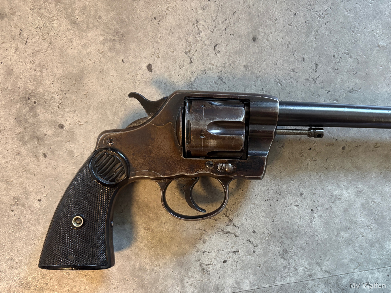 Ultra seltener ziviler Colt New Navy/ Army mod 1896 in Kaliber .38 LC. Baujahr des Revolvers ist 1897. Gültiger Beschuss aus Suhl unter dem Lauf. Bitte beachten Revolver hat .38 LC nicht .38 SP Zuschlagen bei der Gelegenheit. Direktversand an Europäische Händler möglich. Fragen Sie bitte nach den Versandkosten. Wie immer völlig unbearbeitet um Ihnen einen ehrlichen Eindruck des Zustandes zu ermöglichen.. Diese Sammelwaffe kann natürlich gerne, nach vorheriger Absprache in Wolfratshausen besichtigt werden