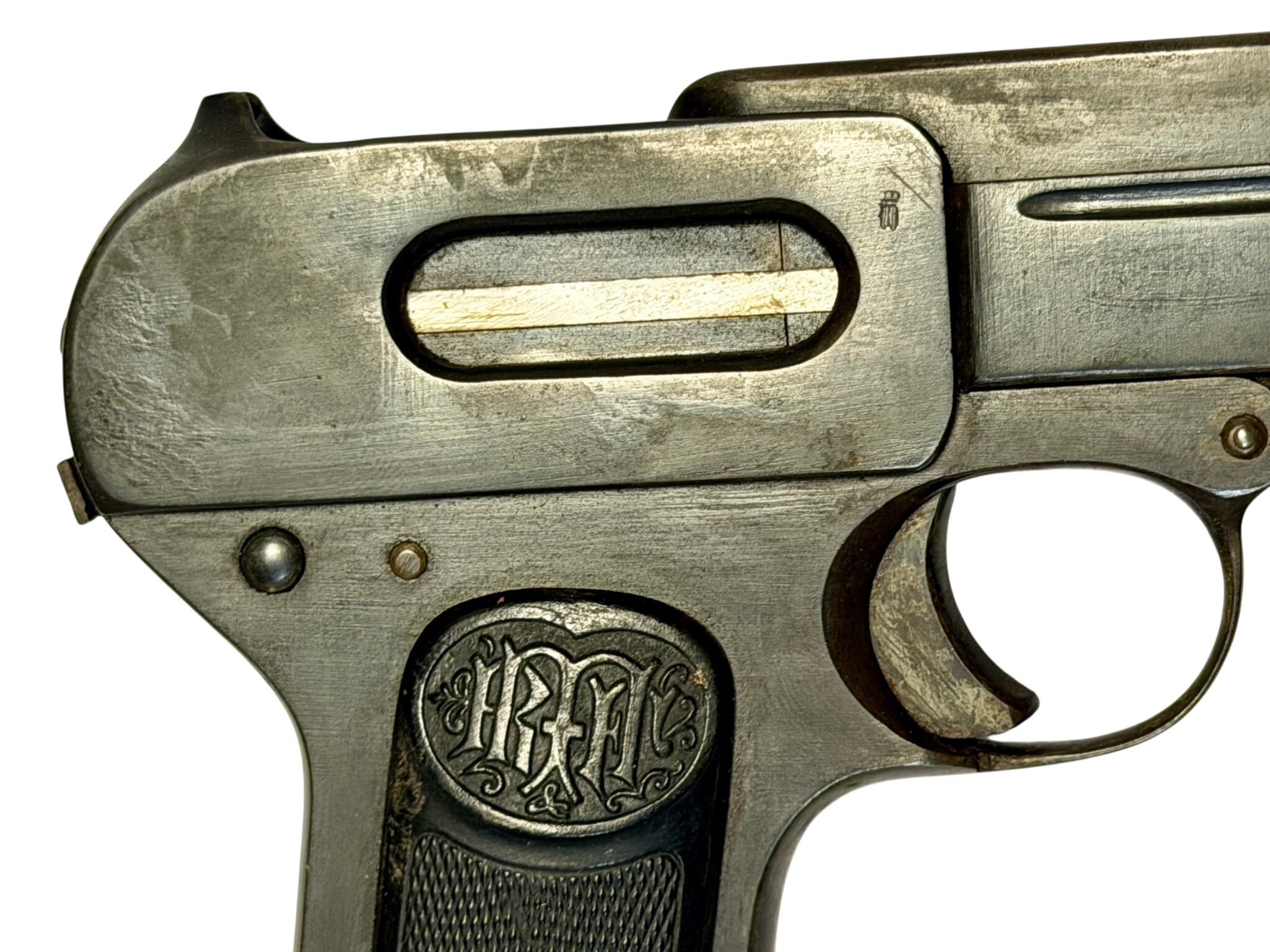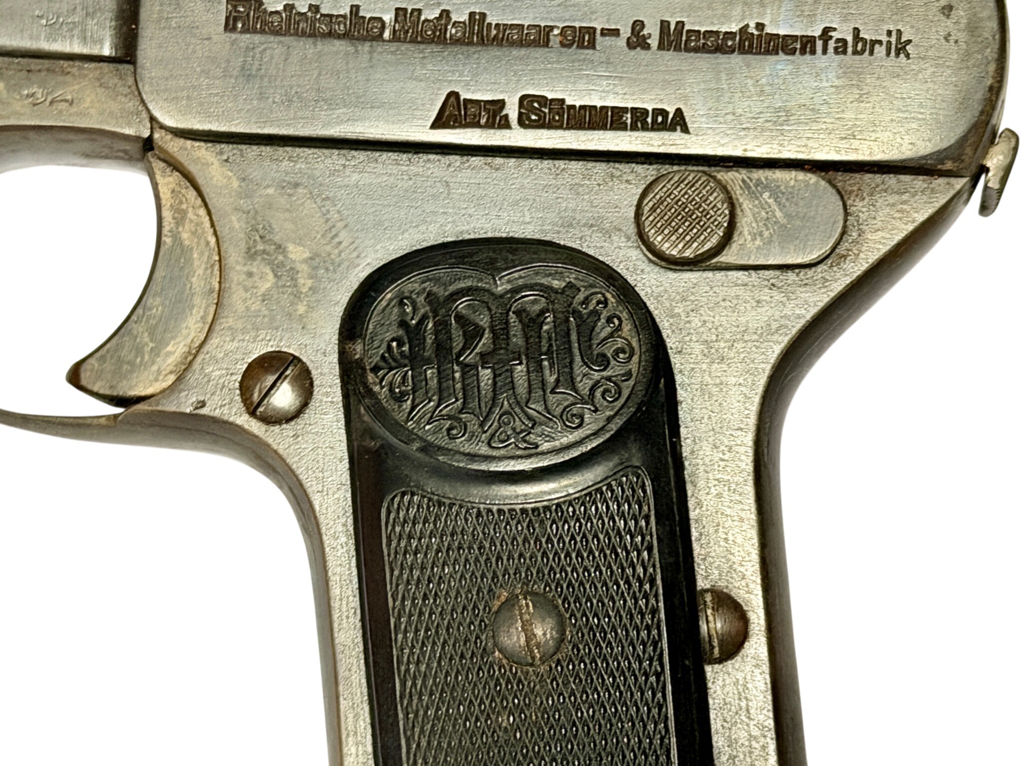 Wir bieten hier im Kundenauftrag eine halbautomatische Sammlerpistole aus dem Hause Dreyse (Rheinische Metallwaaren- und Maschinenfabrik AG), Modell 1907 im Kaliber 7,65mm Browning an.