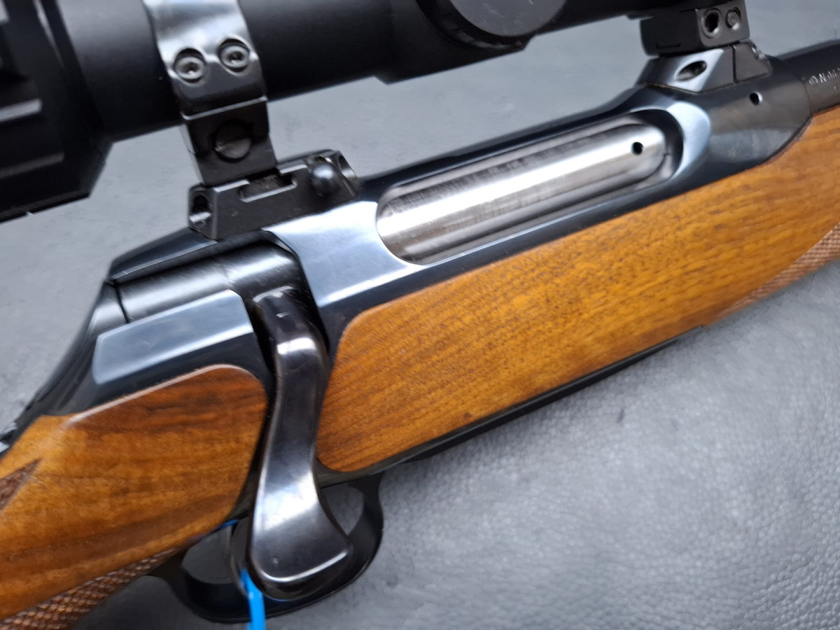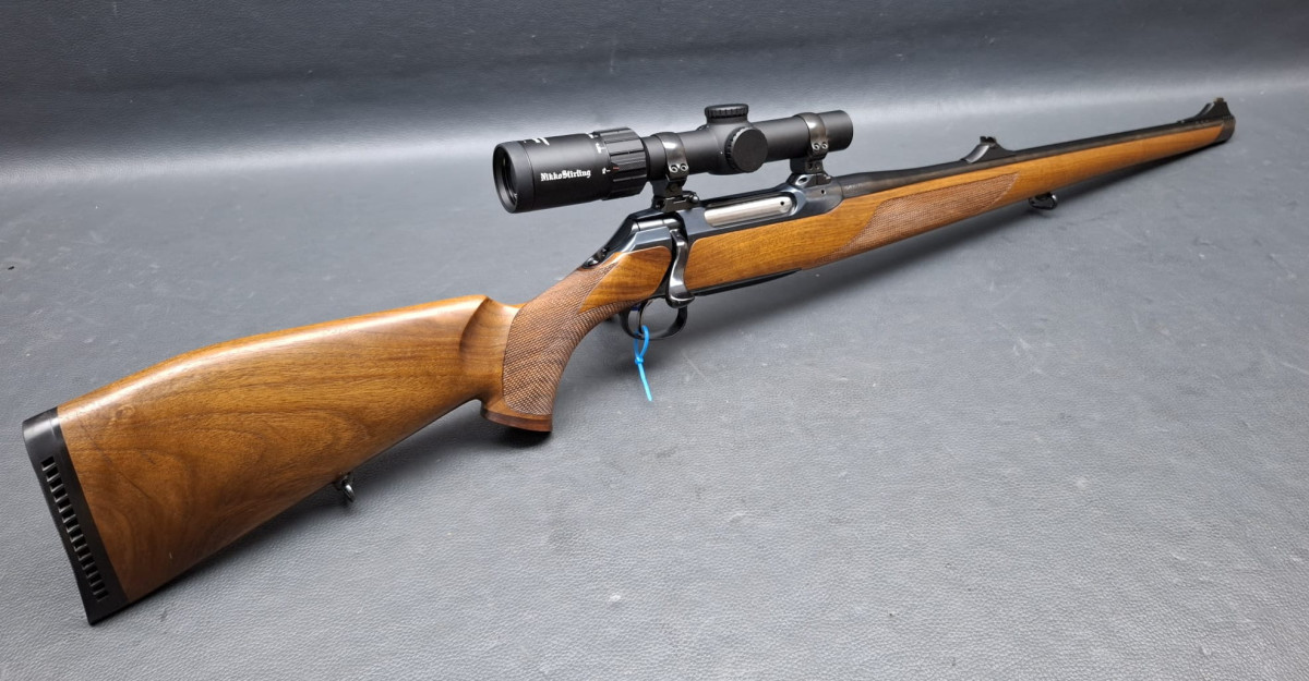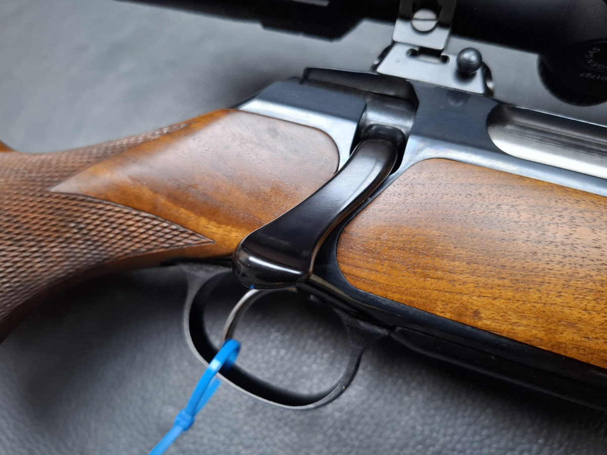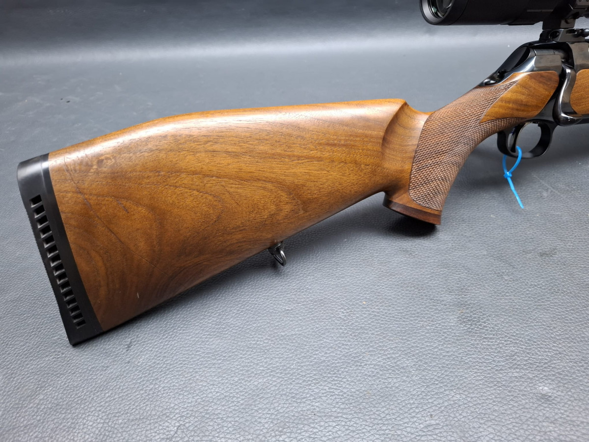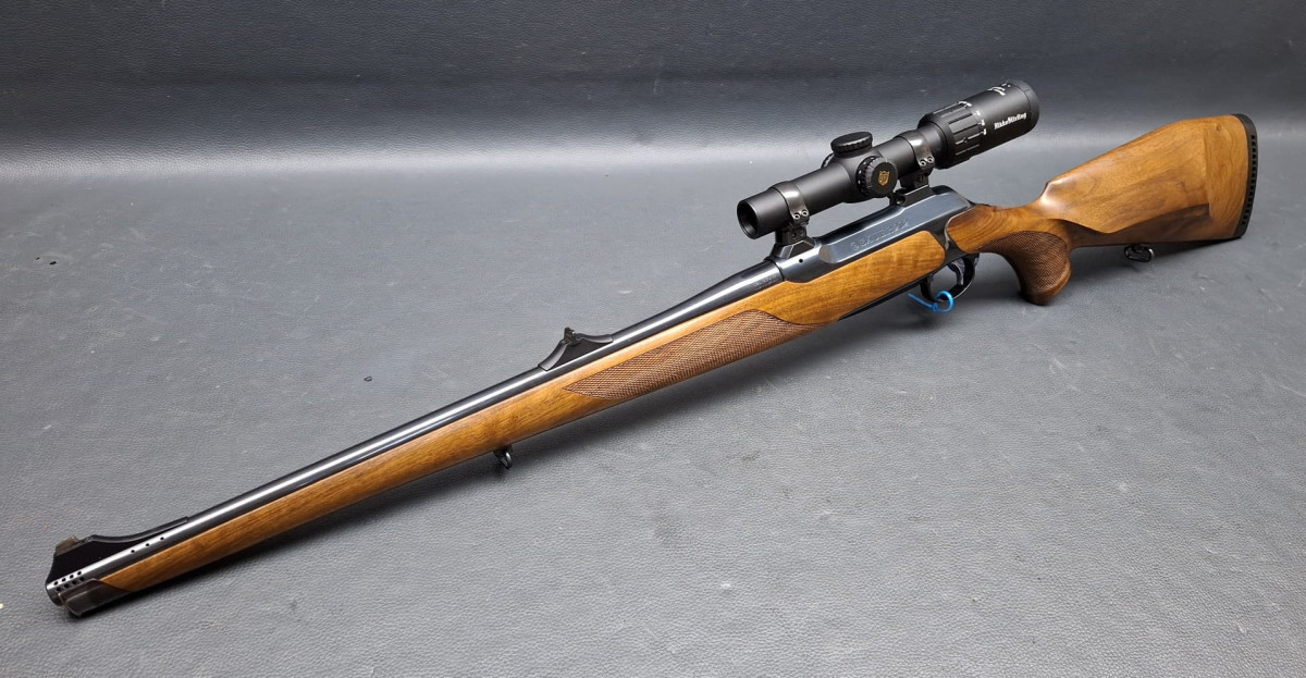 in seltener Stutzen-Ausführung Kaliber 9,3x62 mit führigem Kurzlauf 50cm mit integrierter Mündungsbremse butterweich zu schießen