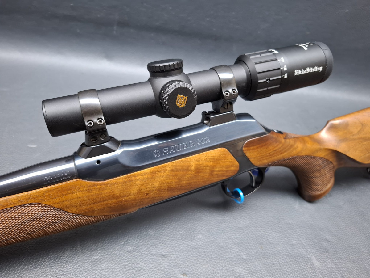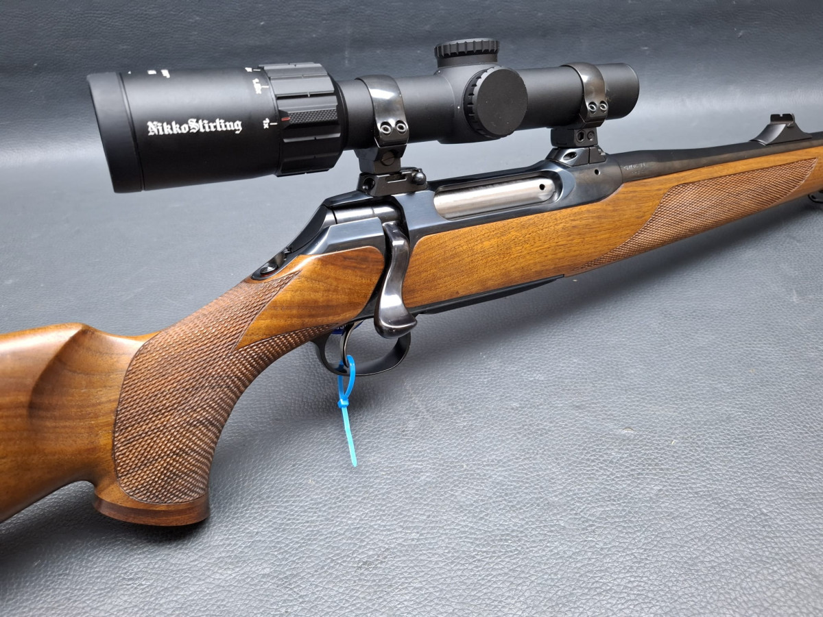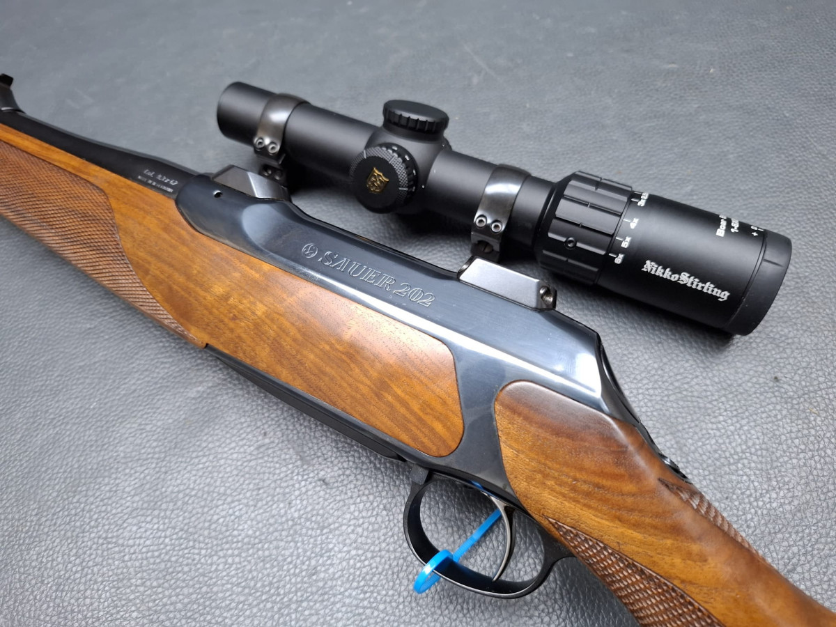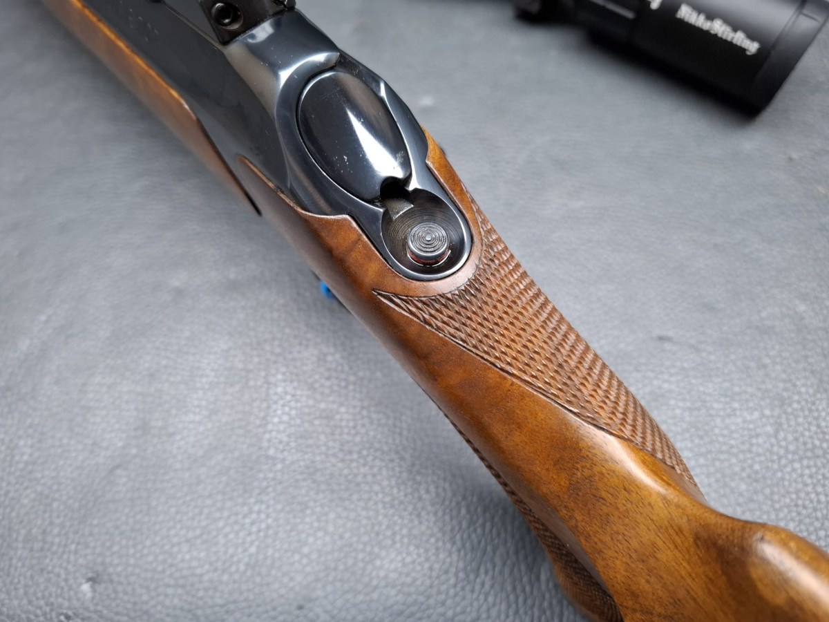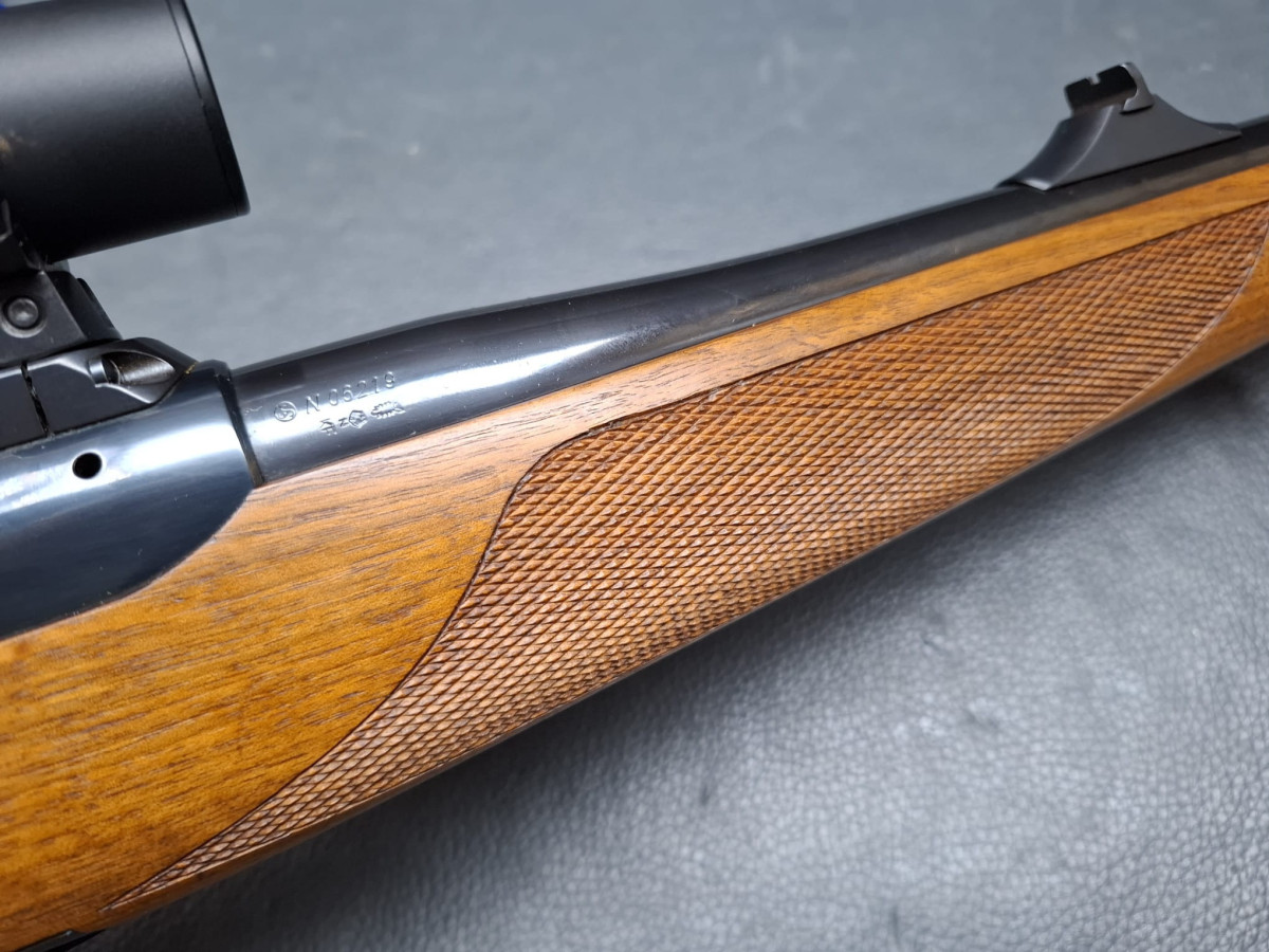 in seltener Stutzen-Ausführung Kaliber 9,3x62 mit führigem Kurzlauf 50cm mit integrierter Mündungsbremse butterweich zu schießen
