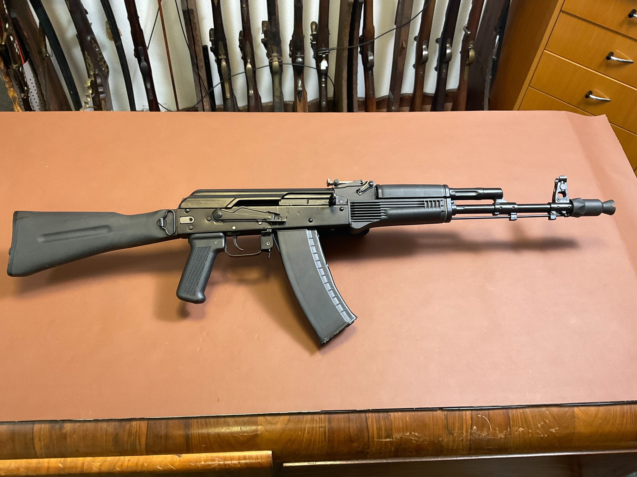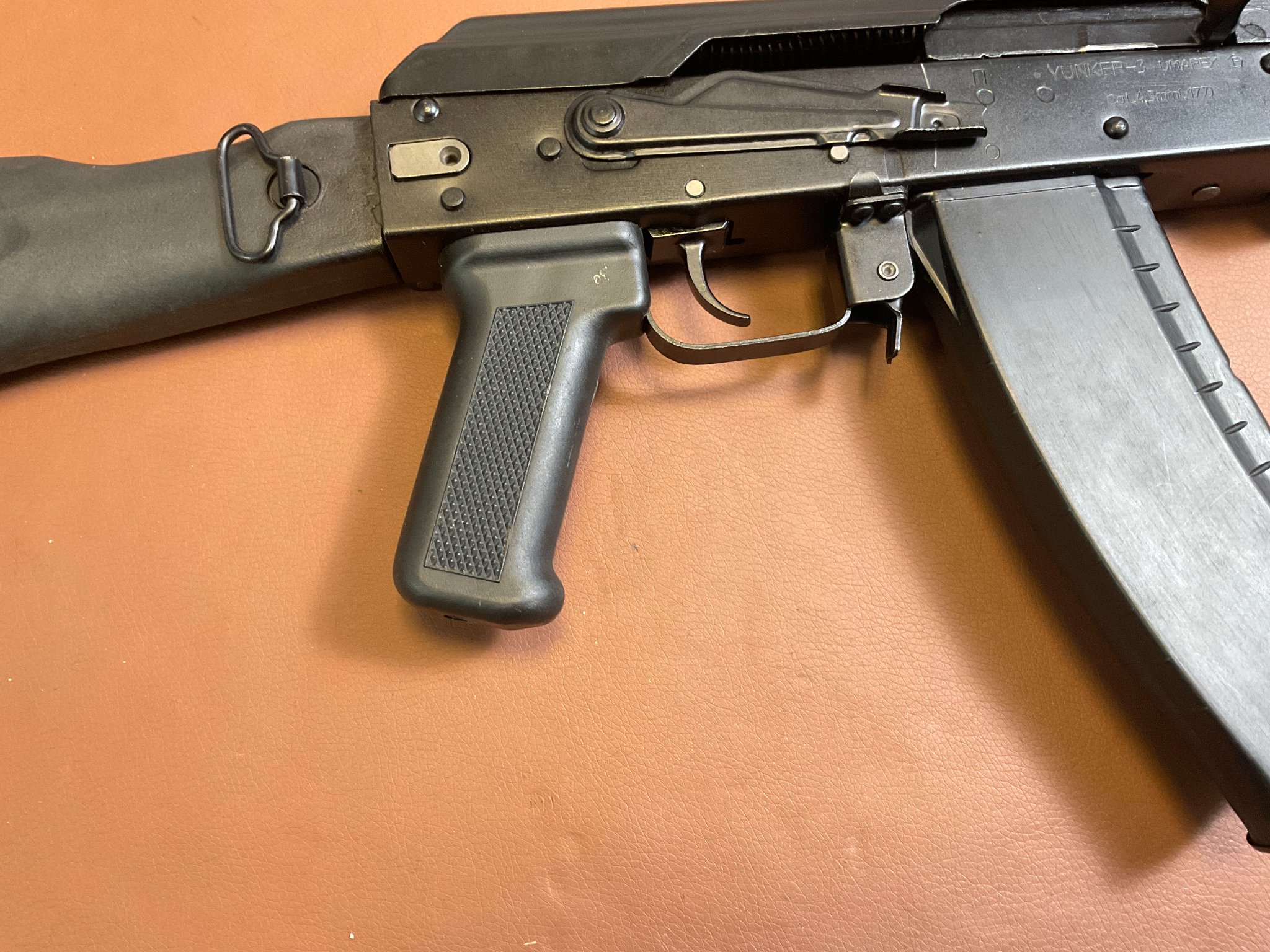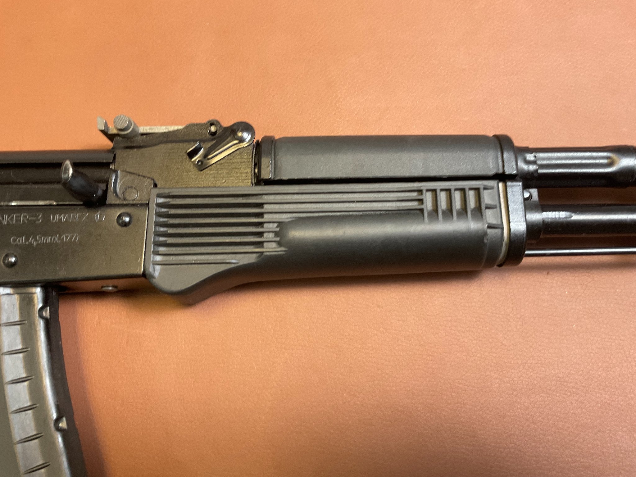 Zum Verkauf steht eine CO₂-Luftdruckbüchse „Yunker 3“, hergestellt von Izhmash (Baikal) und importiert durch Umarex. Es handelt sich um einen originalgetreuen Nachbau der Kalaschnikow AK-74 in halbautomatischer Ausführung. Die Waffe wird mit 12 g CO₂-Kapseln betrieben und verschießt 4,5 mm Stahlrundkugeln (BBs).