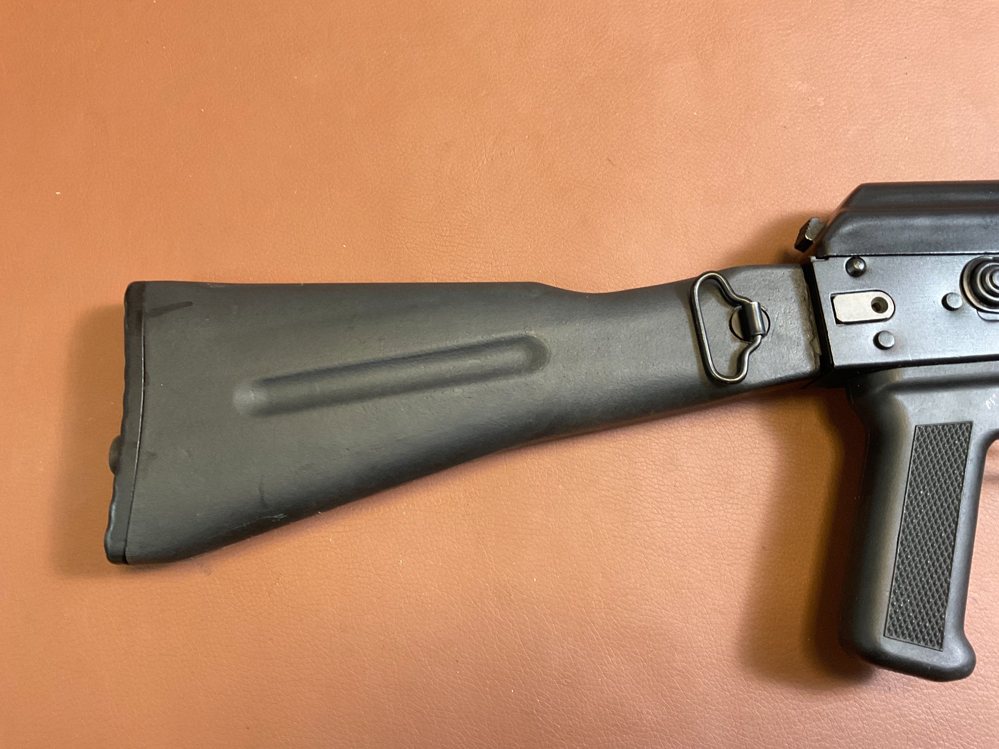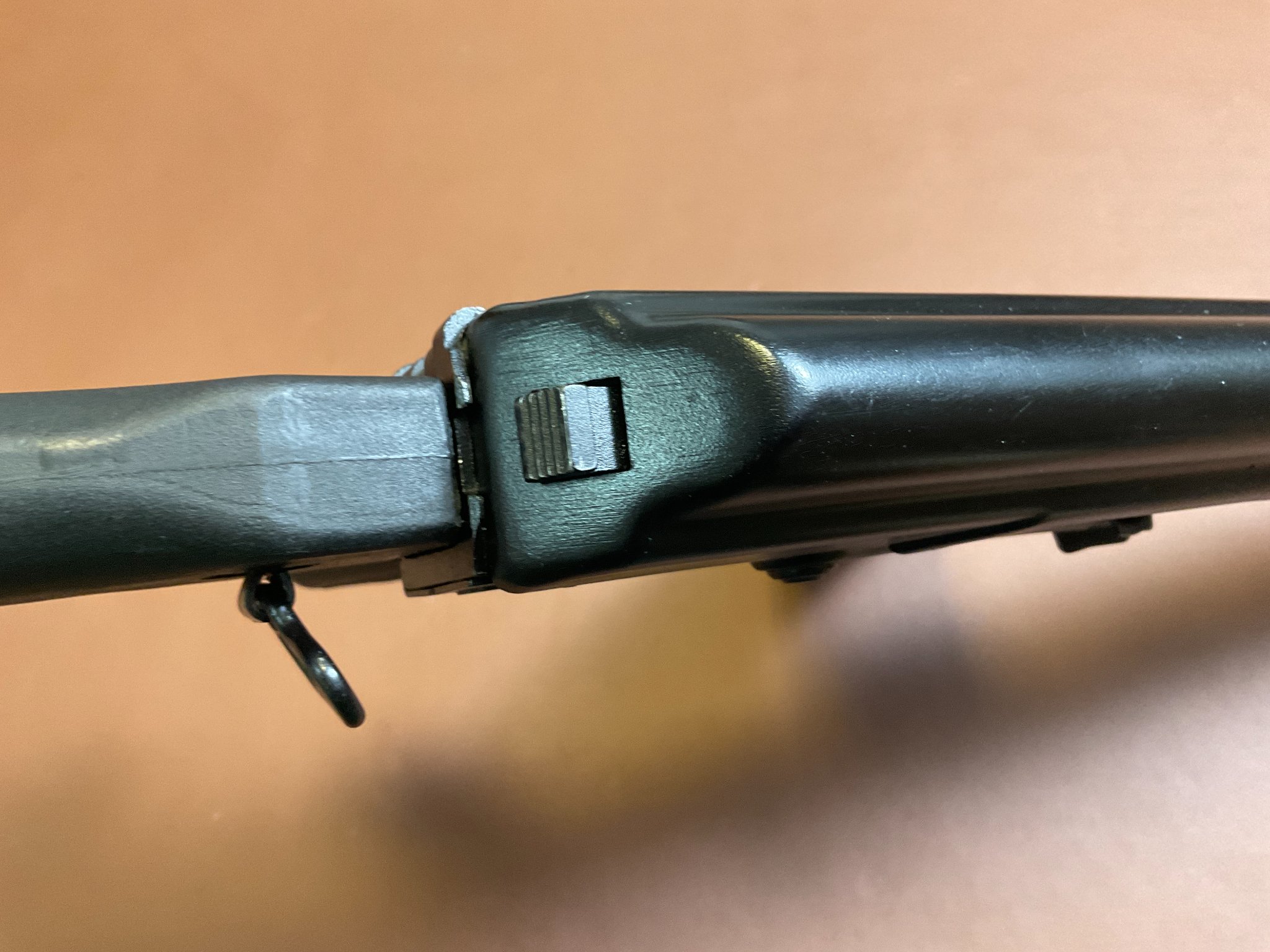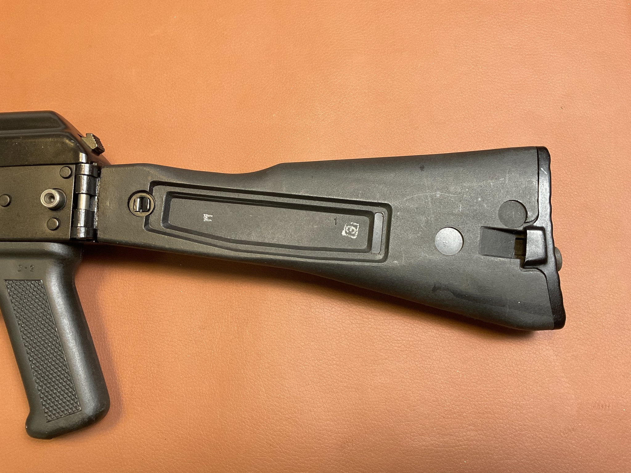 Die Waffe ist fast neuwertig, weist kaum Abnutzungserscheinungen auf und verfügt über einen seitlich klappbaren Schaft, eine höhen- und seitenverstellbare Visierung sowie eine Magazinkapazität von ca. 18 Schuss. Die Gesamtlänge beträgt ca. 94 cm (ausgeklappt). Die Waffe trägt das F-Zeichen im Fünfeck und ist daher in Deutschland frei ab 18 Jahren. Achtung: Altersnachweis erforderlich.