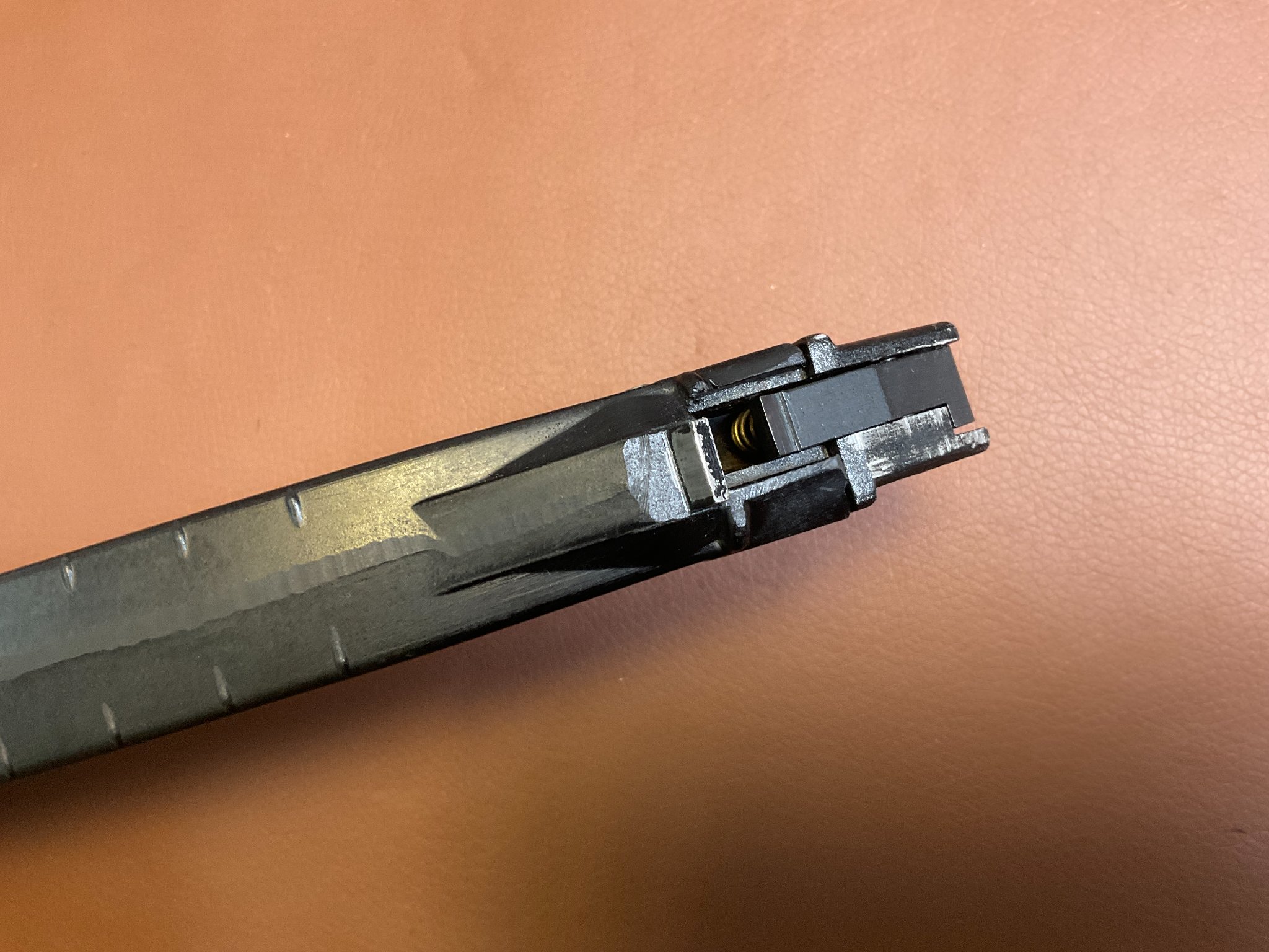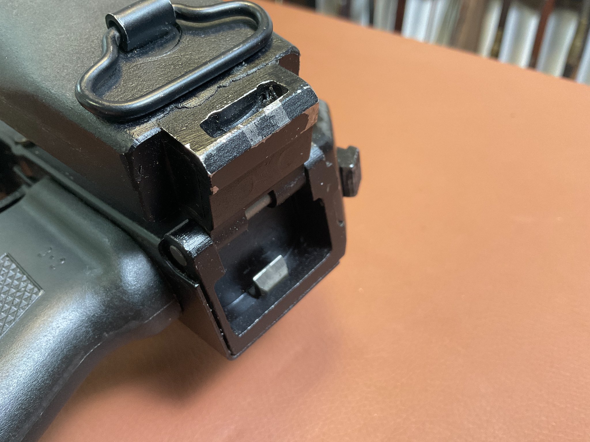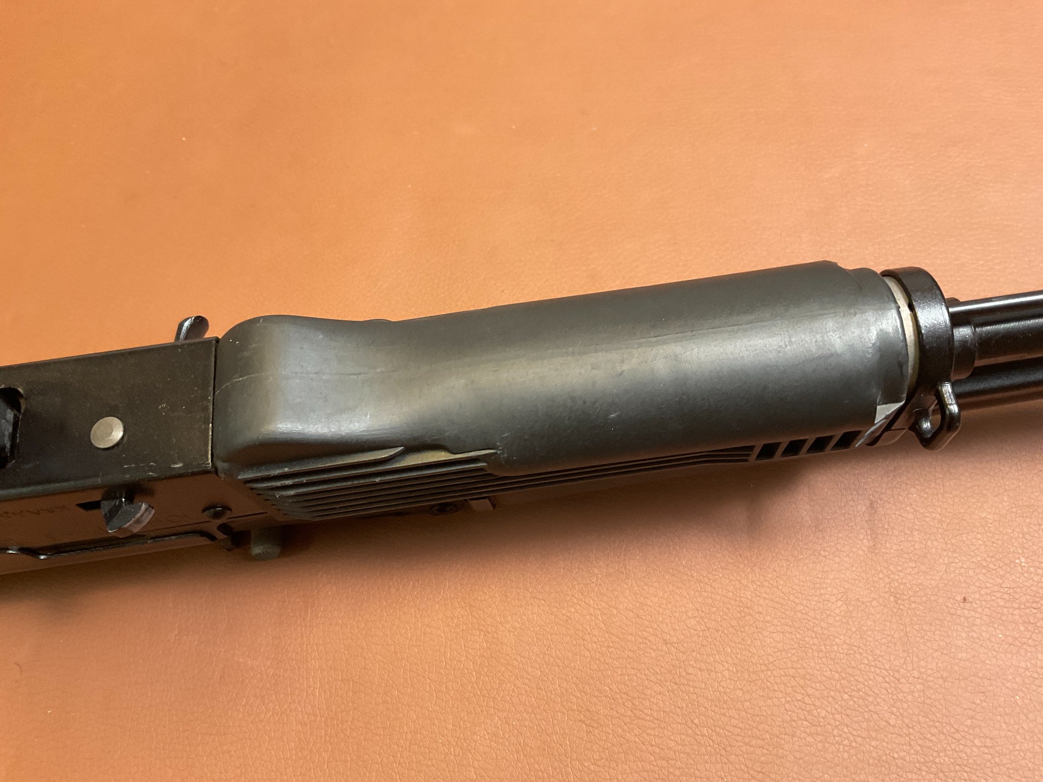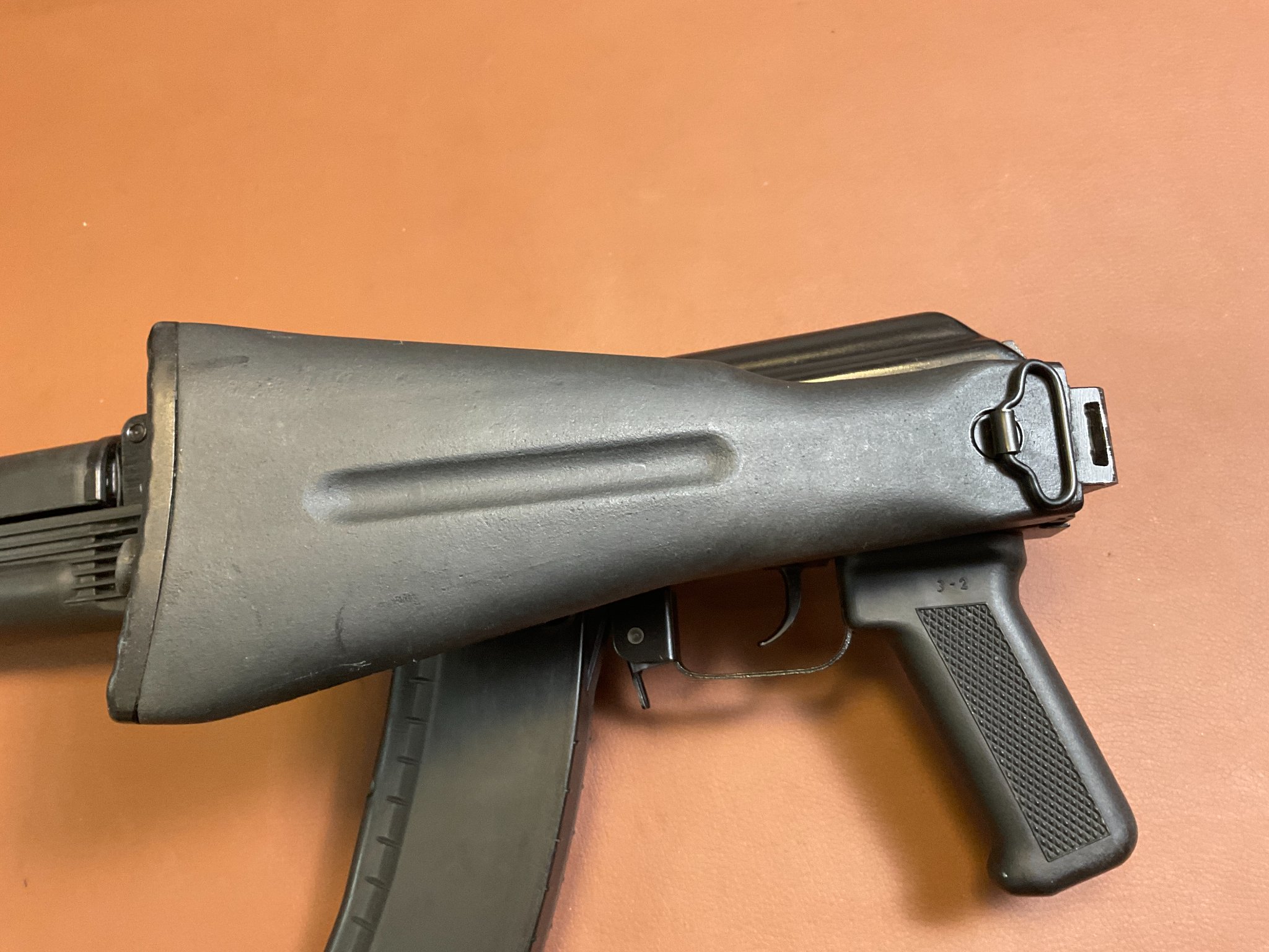 Die Waffe ist fast neuwertig, weist kaum Abnutzungserscheinungen auf und verfügt über einen seitlich klappbaren Schaft, eine höhen- und seitenverstellbare Visierung sowie eine Magazinkapazität von ca. 18 Schuss. Die Gesamtlänge beträgt ca. 94 cm (ausgeklappt). Die Waffe trägt das F-Zeichen im Fünfeck und ist daher in Deutschland frei ab 18 Jahren. Achtung: Altersnachweis erforderlich.