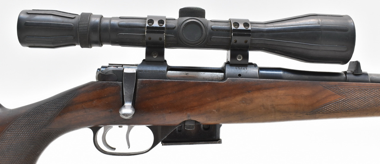 Rep.-Büchse Kaliber .22 Hornet Länge: 107cm Lauflänge: 58,5cm Gewicht: 3370g. Auf Wunsch und gegen Aufpreis von 50.-Euro kann die Waffe