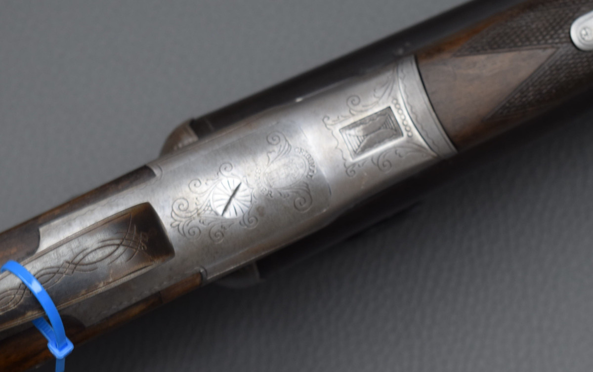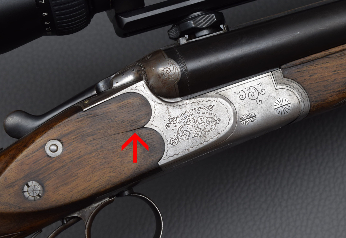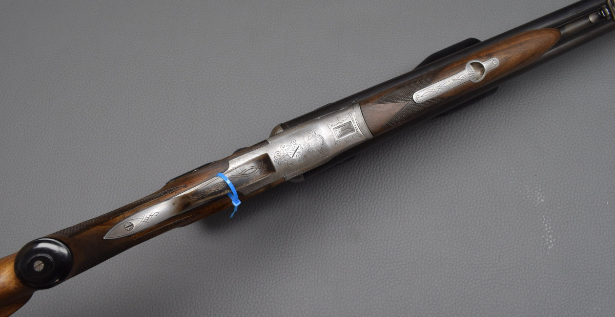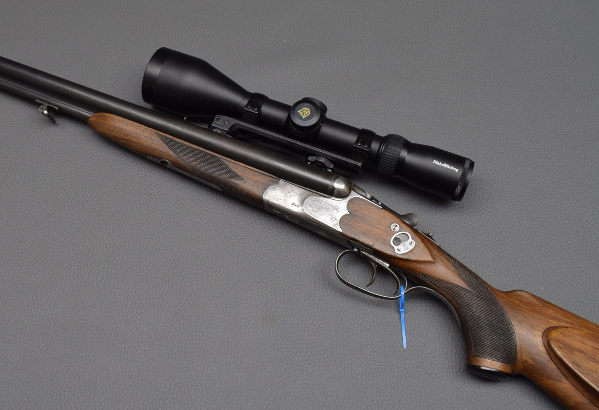 Sauer & Sohn, Kaliber 16/70 8x57IRS Laufbündel mit automatischer Klappvisierung, Signalstiften, Rückstecher für den Kugellauf.