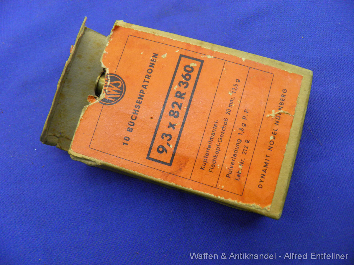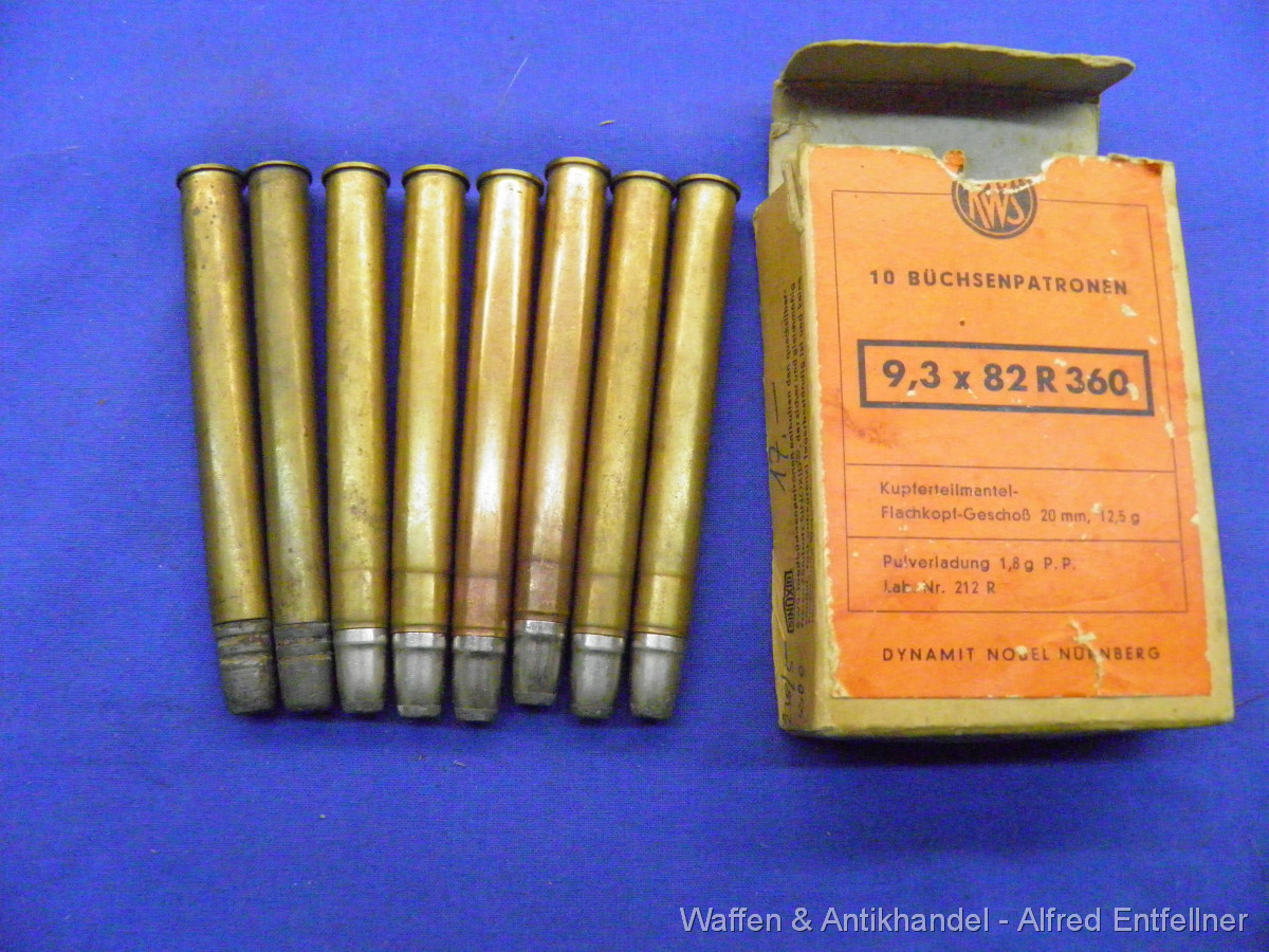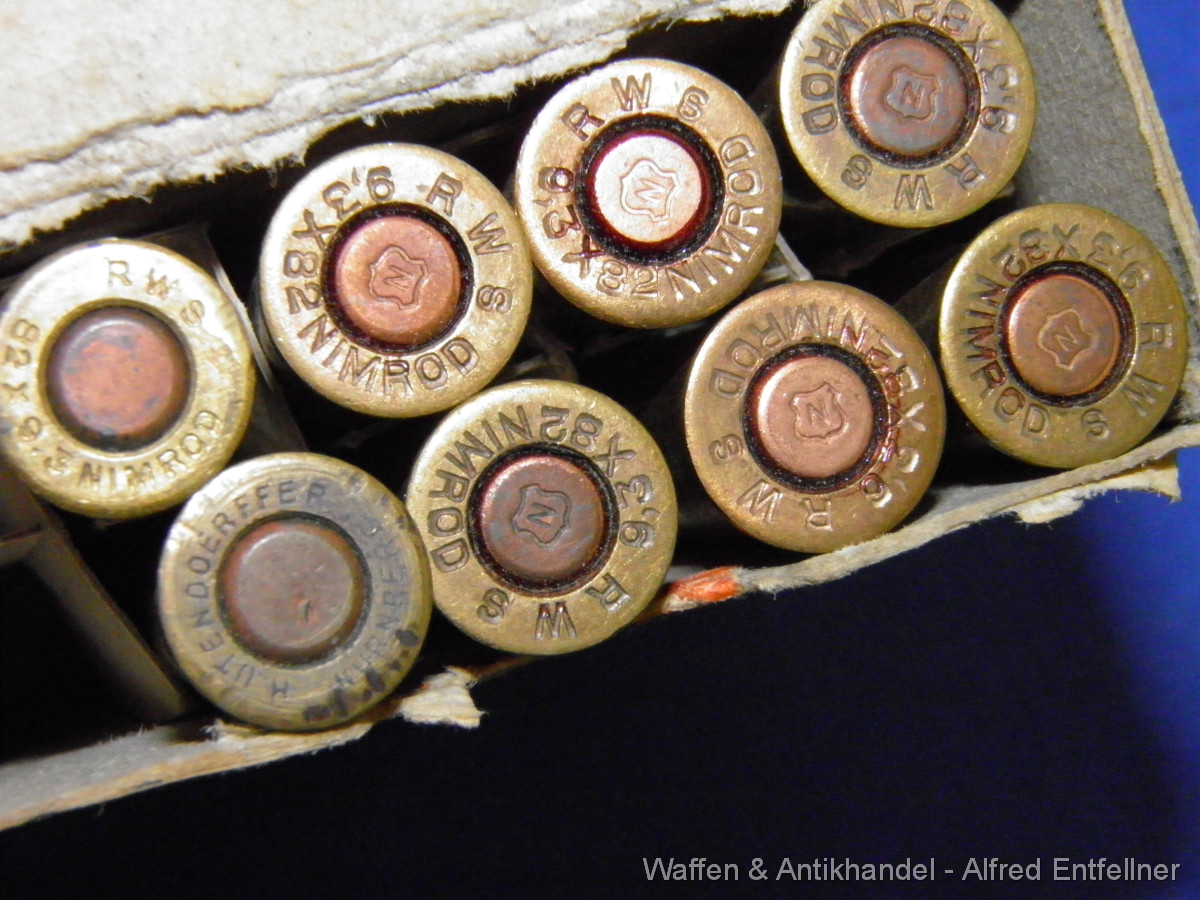 Packung mit 8 Patronen das Uralte Drillingkaliber 9,3 X 82 R