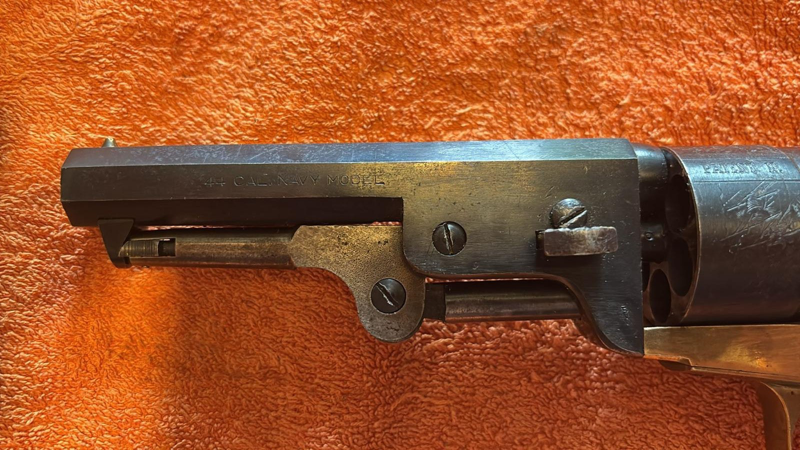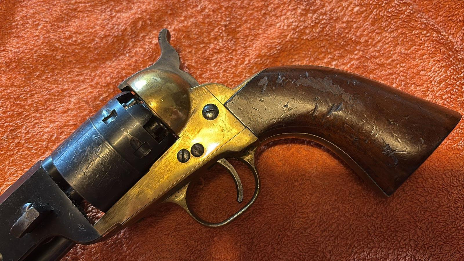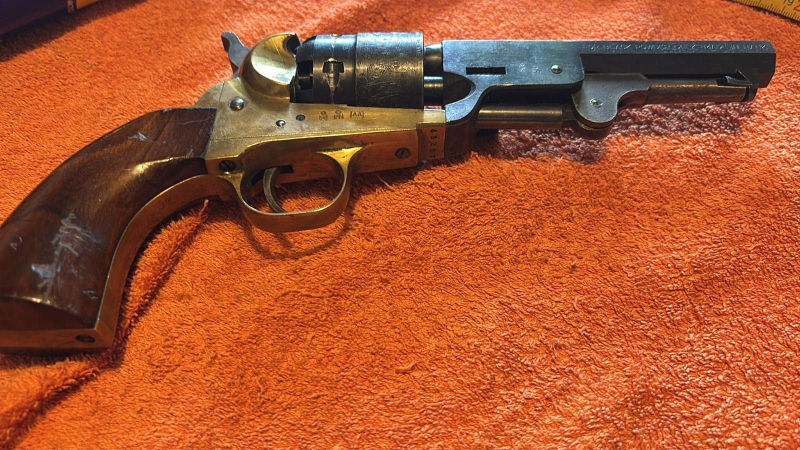 Dieser alte sechsschüssige Vorderlader Revolver, Kaliber 44, lag über 40 Jahre im Tresor und es wurde nicht mit geschossen.